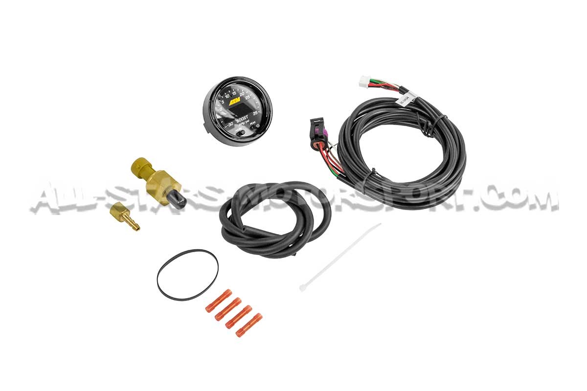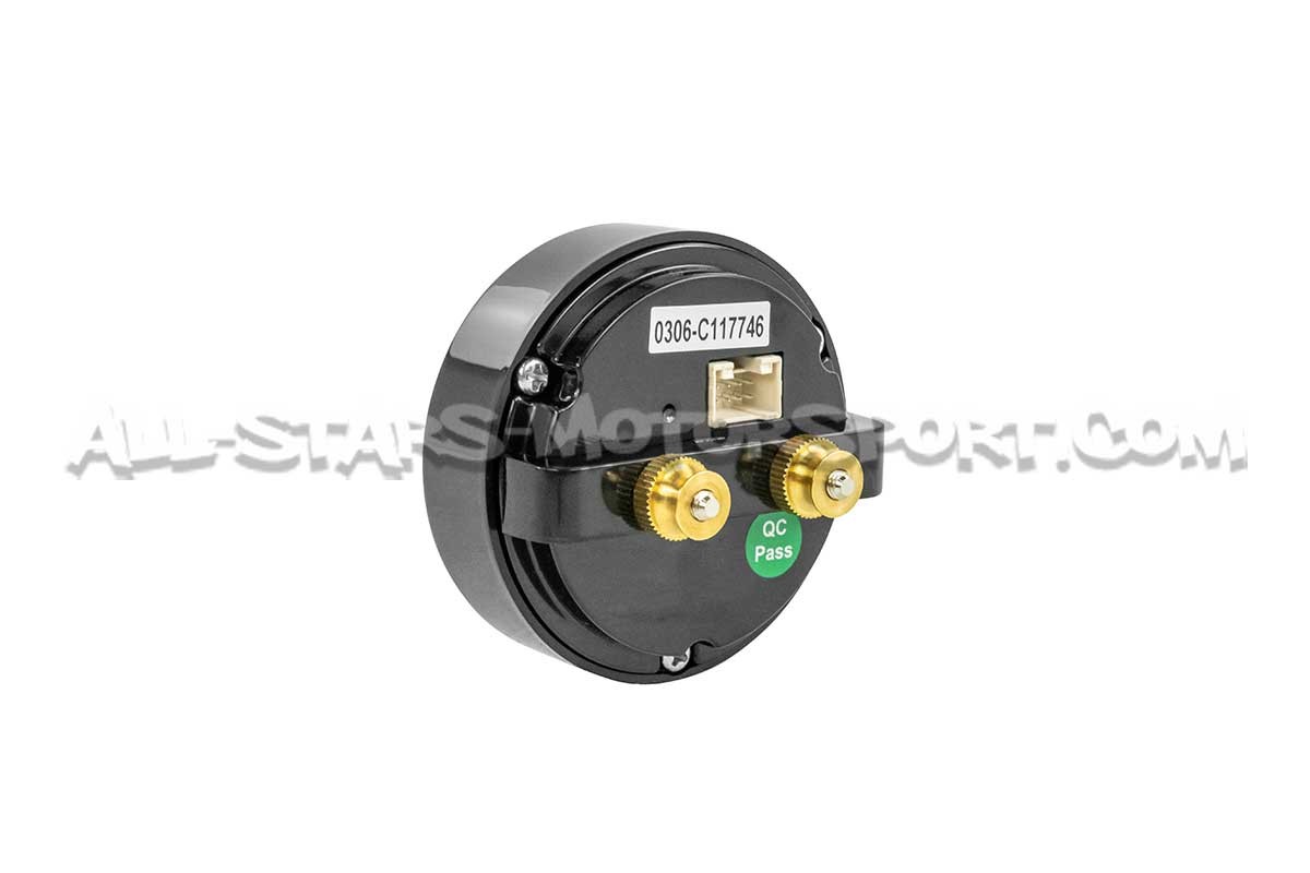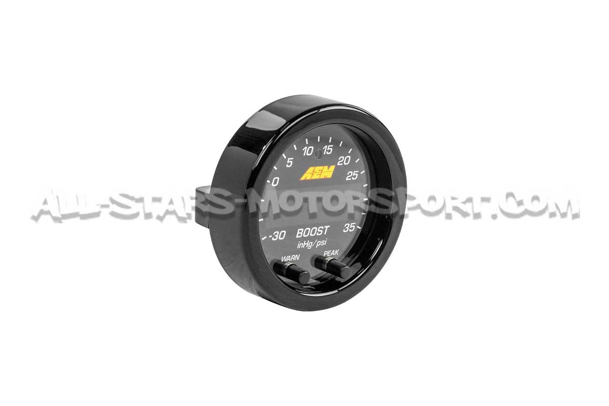 This AEM X-series boost gauge is compact, precise, and aesthetically pleasing. Housed in a 52mm diameter casing, this boost pressure gauge features a digital display for accurate readings and a sweeping arc spectrum ranging from green to red for quick monitoring. Coming ready to install, this AEM digital boost pressure gauge with black background is graduated in bars and psi ranging from -1 bar to +2.5 bars