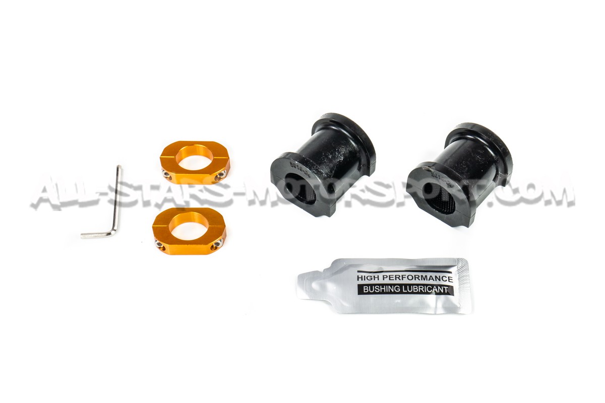 Whiteline front sway bar kit is a direct bolt on upgrade to reduce body roll or sway via 2 adjustable positions. Reducing body roll, lateral loads are spread more evenly across the tires thereby increasing cornering grip and improving outright performance. This kit features a larger diameter sway bar, mount bushings and all required hardware for direct installation !
