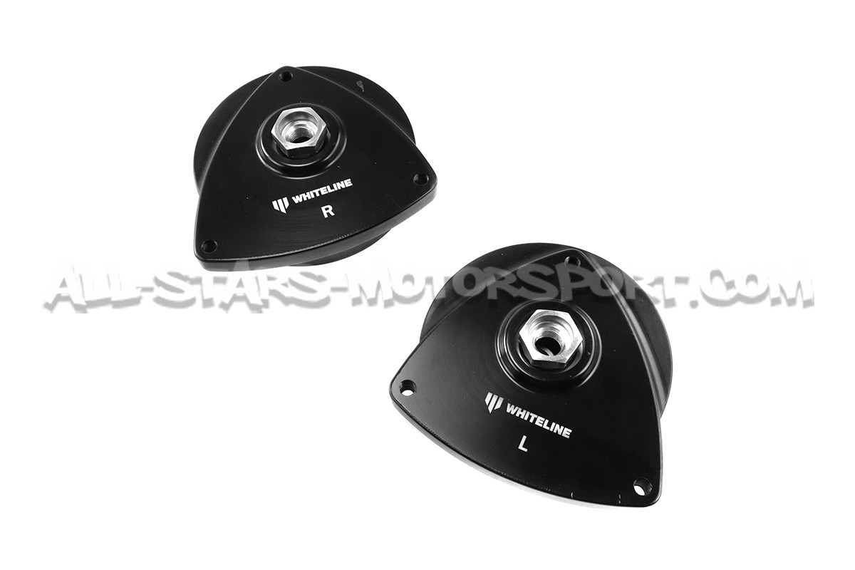 This Whiteline front strut mount kit for Golf 7 GTI / Golf 7 R / Leon 3 Cupra / Octavia VRS is designed to bring an extra negative camber and positive caster to improve steering response and feeling. Coming with a predefined setting, these mounts will considerably improve your chassis without requring any adjustment like adjustable mounts !