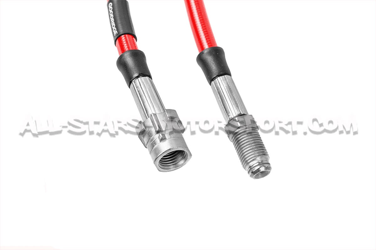 Manufactured in the UK, this Goodridge brake lines kit for BMW M5 F90 / M8 F9x includes 4 stainless steel T304 front and rear braided lines designed to keep an effective pressure in your braking system. Direct replacement for the OEM lines, the Goodridge lines coming with a PVC outer cover which is available in 4 different colors, improve security and efficiency in all situations !