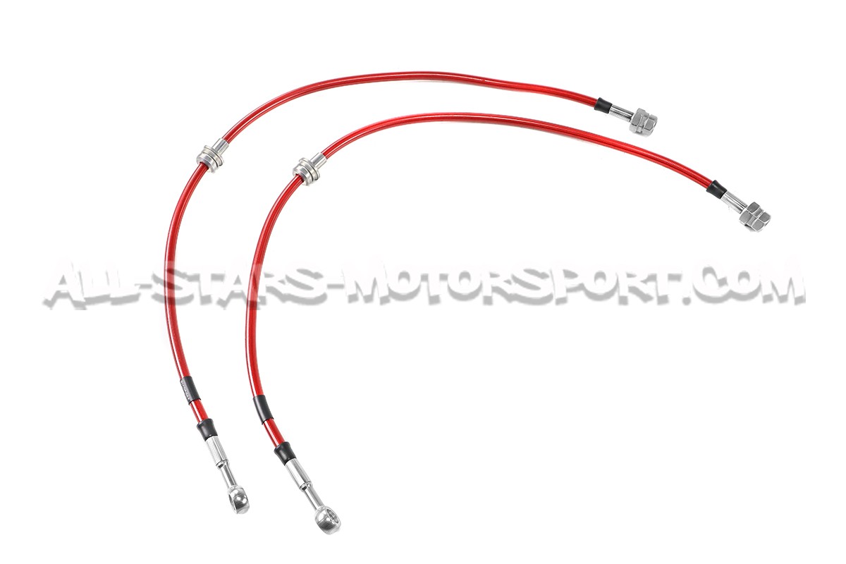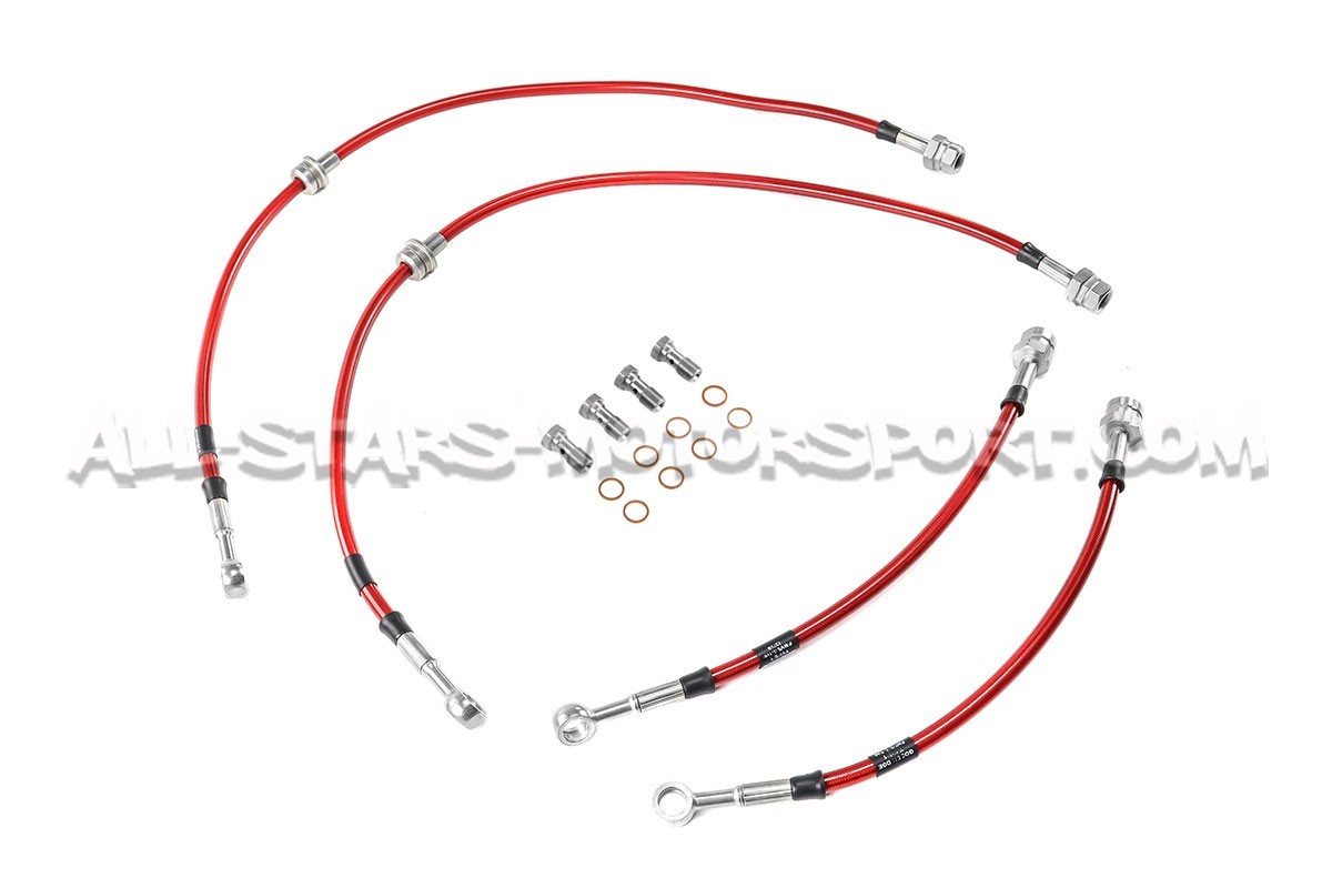 Manufactured in the UK, this Goodridge brake lines kit for Golf 8 GTI / Golf 8 R / Clubsport includes 4 stainless steel T304 front and rear braided lines designed to keep an effective pressure in your braking system. Direct replacement for the OEM lines, the Goodridge lines coming with a PVC outer cover which is available in 4 different colors, improve security and efficiency in all situations !