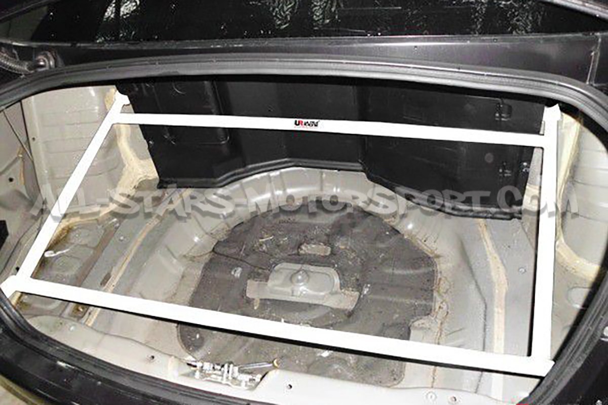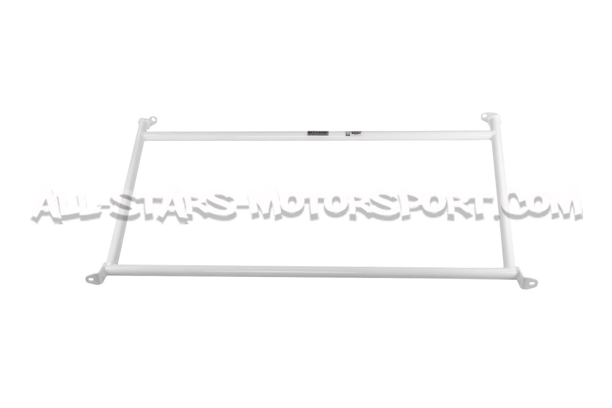 Designed to fit without any modifications in order to stiffen the rear end of the Mitsubishi Lancer Evo X, this Ultra Racing 4-points rear upper strut bar has a high-density steel structure resistant to extreme stress and a very qualitative white finish.
