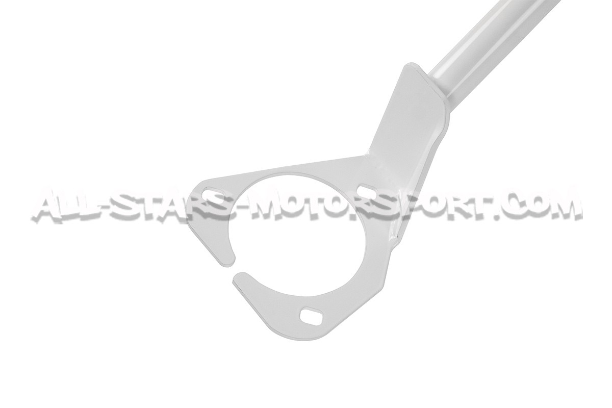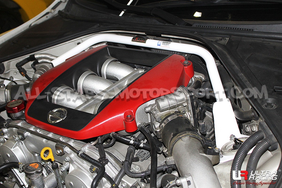 Designed to fit without any modifications in order to stiffen the front end of the Nissan R35 GTR, this Ultra Racing 2-points front upper strut bar has a high-density steel structure resistant to extreme stress and a very qualitative white finish in order to bring a sporty touch to the engine bay.