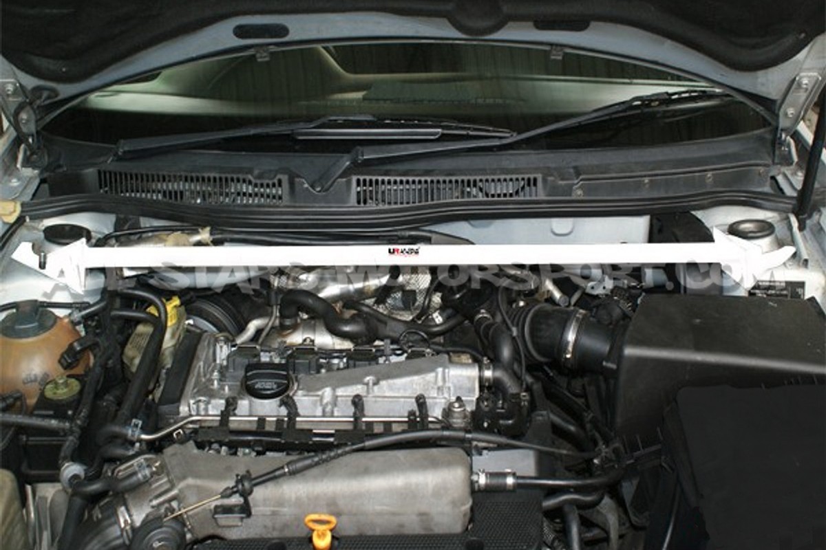 Designed to fit without any modifications in order to stiffen the front end of the Golf 4 GTI / Leon 1M / S3 8L, this Ultra Racing 2-points front upper strut bar has a high-density steel structure resistant to extreme stress and a very qualitative white finish in order to bring a sporty touch to the engine bay.
