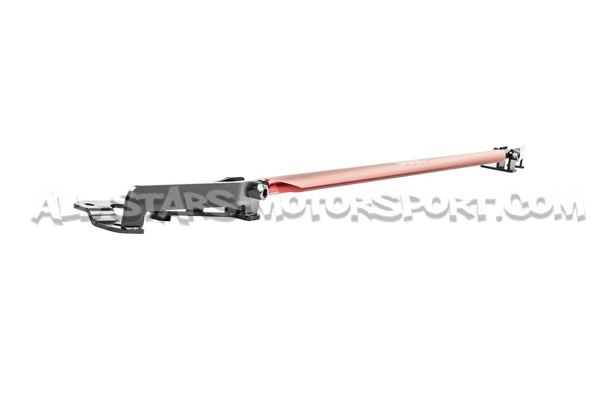 This Tanabe Sustec front upper strut bar, made from high quality aluminium, fits without modification on the Toyota Yaris GR to stiffen the front axle and bring a colourful touch to the engine bay thanks to its Alumite Red finish.