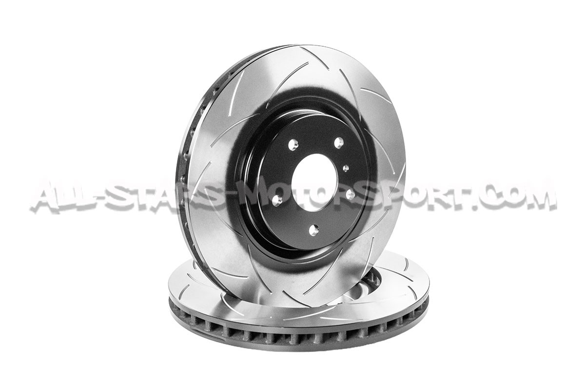 Installed as a direct replacement for the standard front discs on the Nissan 350Z, these 324mm DBA T2 Street Series discs feature a bi-symmetrical slotted structure for optimal braking quality and a ventilated "Kangaroo Paw" for better heat dissipation. Designed for road / sport use, this two-disc kit will provide enduring and responsive braking while maintaining optimal driving comfort in all conditions.