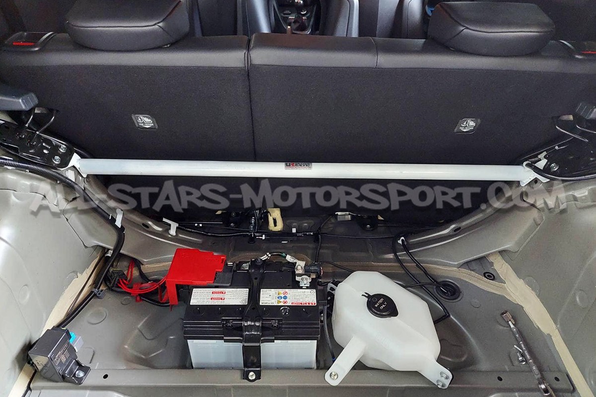 Designed to fit without any modifications in order to stiffen the rear end of the Toyota Yaris GR Gen.1, this Ultra Racing 2-points rear upper strut bar has a high-density steel structure resistant to extreme stress and a very qualitative white finish.