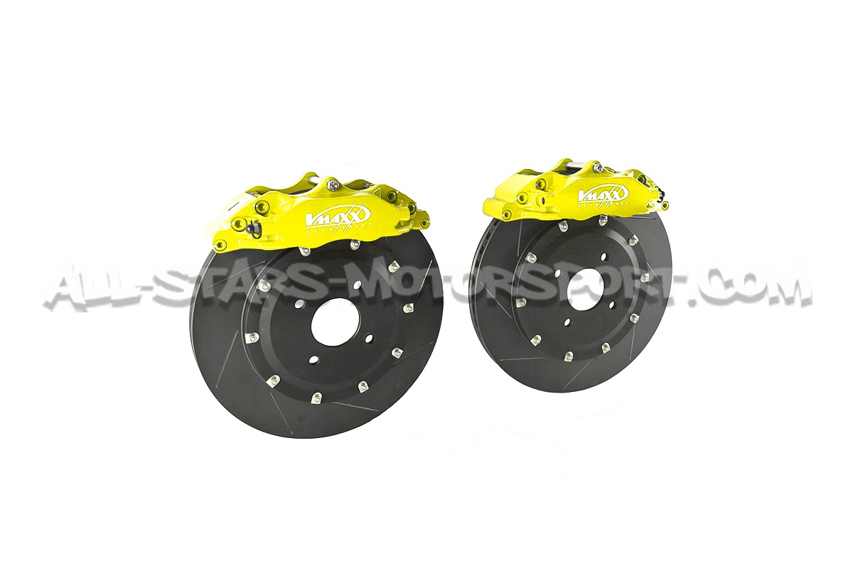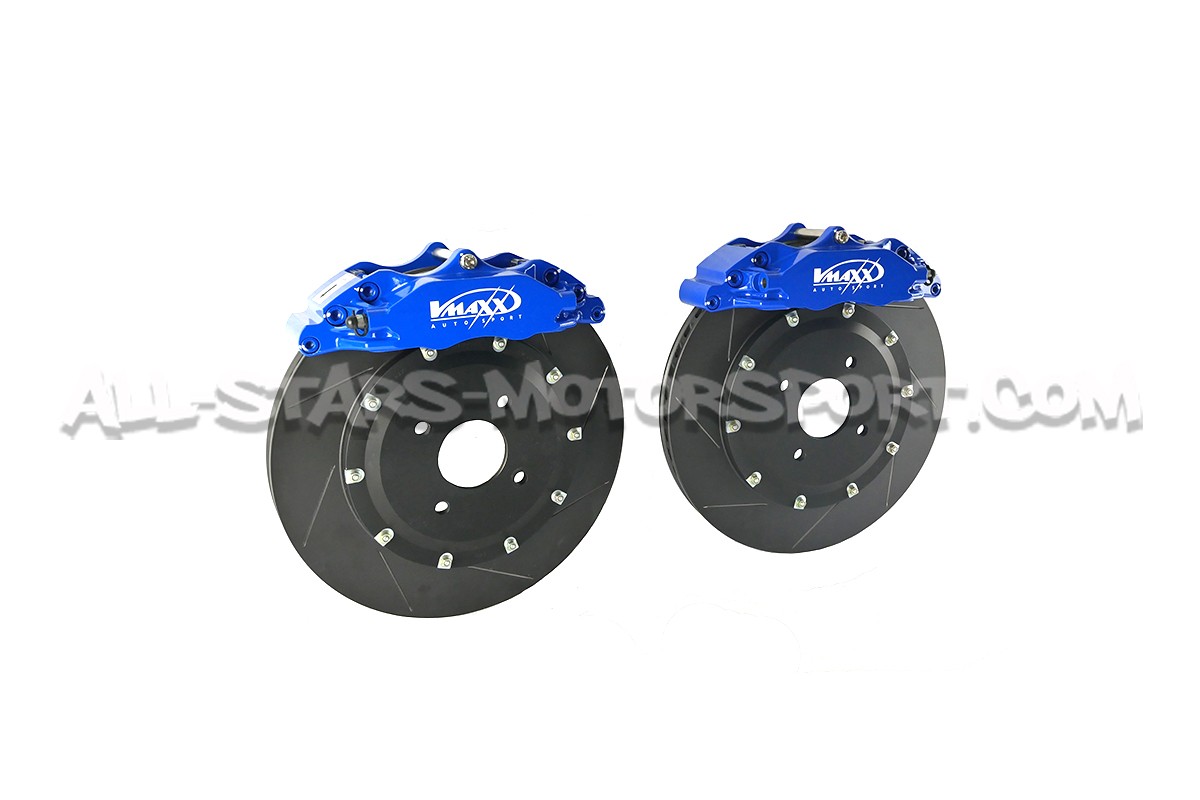 The Vmaxx big brake kit for Ford Fiesta ST 180 features 4 pots calipers, grooved 290mm discs, braided lines, street / sport pads and all required hardware for direct easy install !