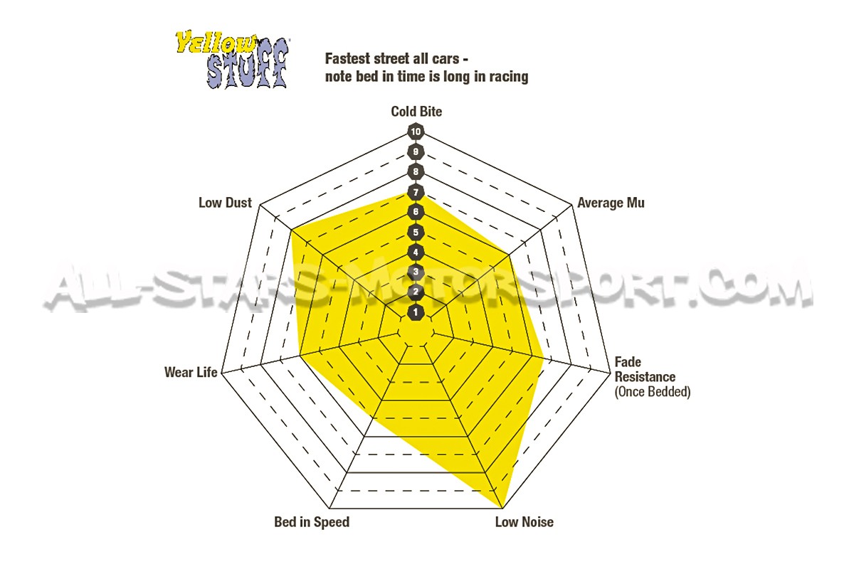 Designed for fast road use, EBC Yellow Stuff brake pads are among the most popular options on the market for daily driving or occasional track days. Providing optimal performance up to 500°C, these rear pads for the Honda Civic Type R FK2 provide an excellent balance between comfort, performance, and durability. Offering an excellent cold bite, Yellow Stuff pads drastically reduced stopping distances compared to OE, without generating noise or excessive brake dust on the wheels.