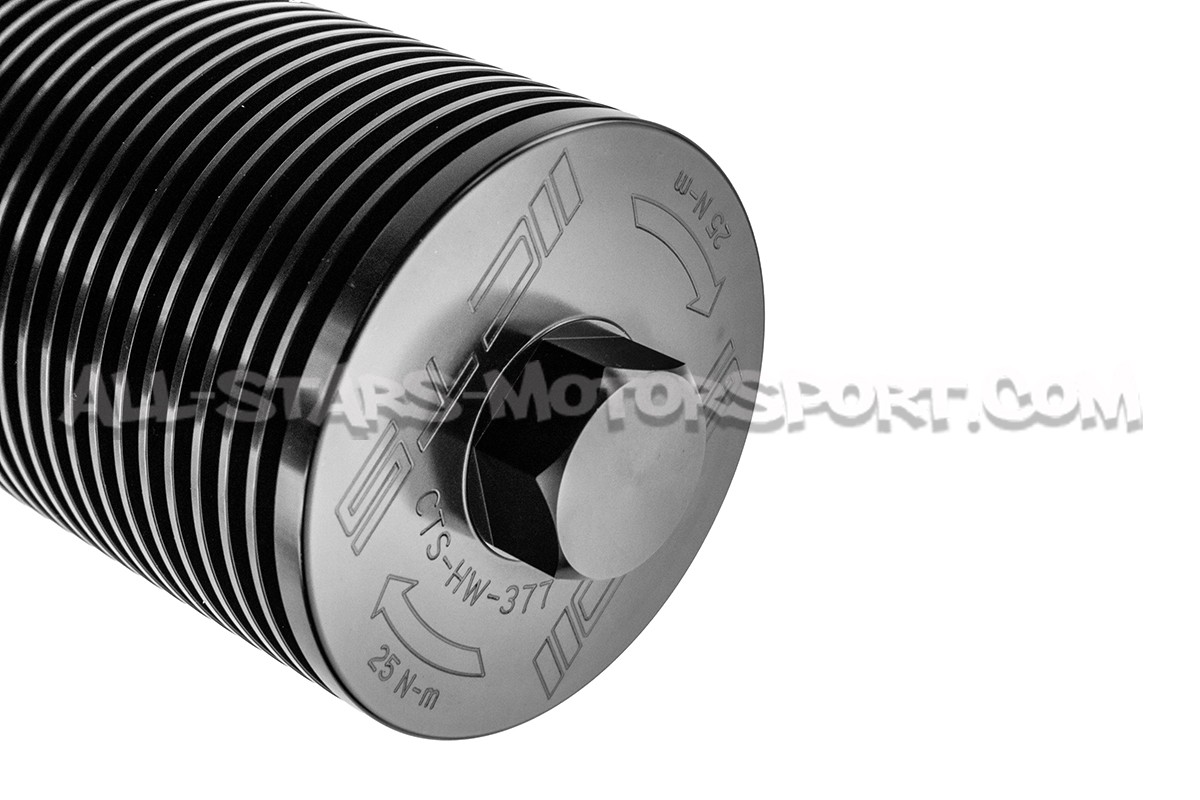 This CTS Turbo oil filter housing for DSG 6 or DSG 7 transmission made from black anodized aluminum is not just an aesthetic detail, it's also a source of reliability. Replacing the poor OEM plastic one, this machined aluminium filter hosing will ensure longevity and great looking !