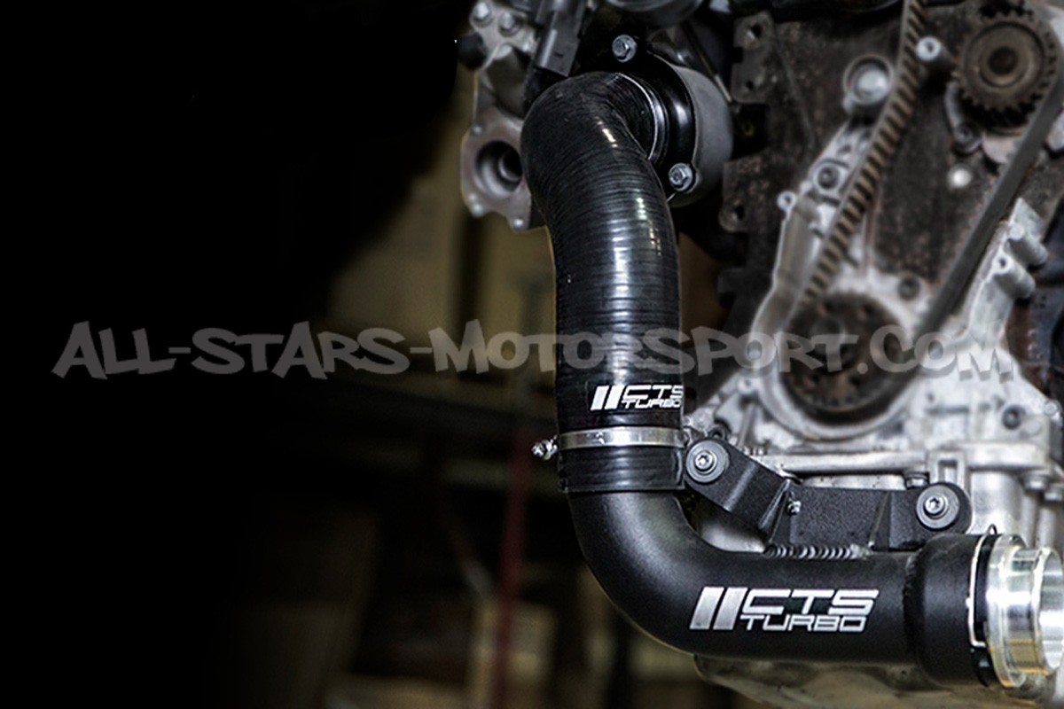 The CTS Turbo Outlet Pipe is designed to replace the narrow 'pancake' pipe that comes as factory equipment on your vehicle. CTS Turbo Outlet Pipe features 2.25" diameter aluminum tube for optimized flow. The CNC machined billet mating flange makes connecting this TOP to your FMIC literally a snap. The billet anodized turbo to TOP connector, 2.25" coupler and premium clamps top this package off. If you're looking for a simple bolt on modification that will optimize flow and increase power, then this part is for your :