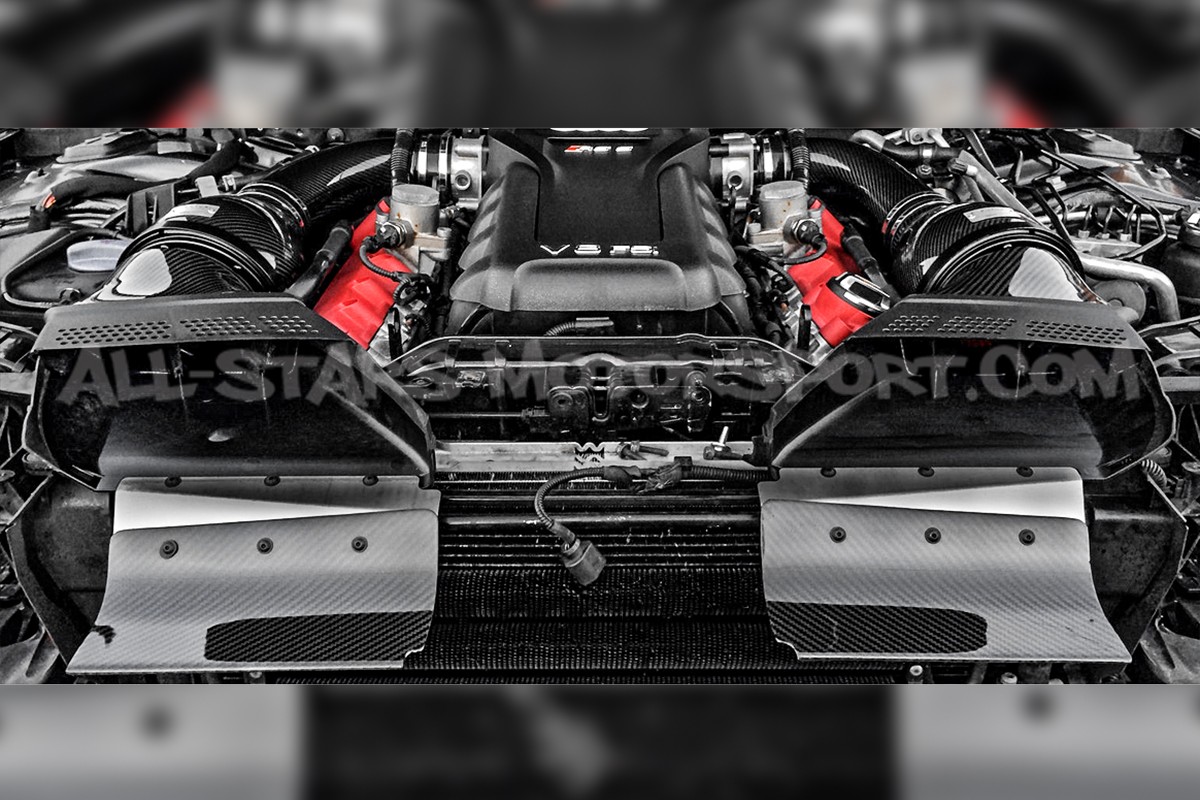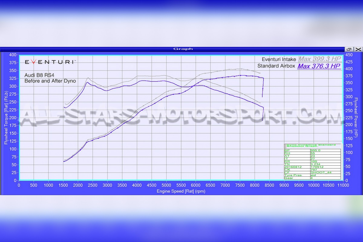 The Audi RS5 8T and RS4 B8 Eventuri intake was developed to give less restrictive airflow to the engine whilst maintaining low inlet temperatures. The 4.2 V8 engine bay becomes heat soaked very quickly so simply having an open cone system would result in better airflow but higher inlet temperatures. Eventuri therefore completely re-engineered the inlet system from the throttle bodies to the front grill with a highly efficient carbon fiber sealed system able to produce a huge extra 23hp !