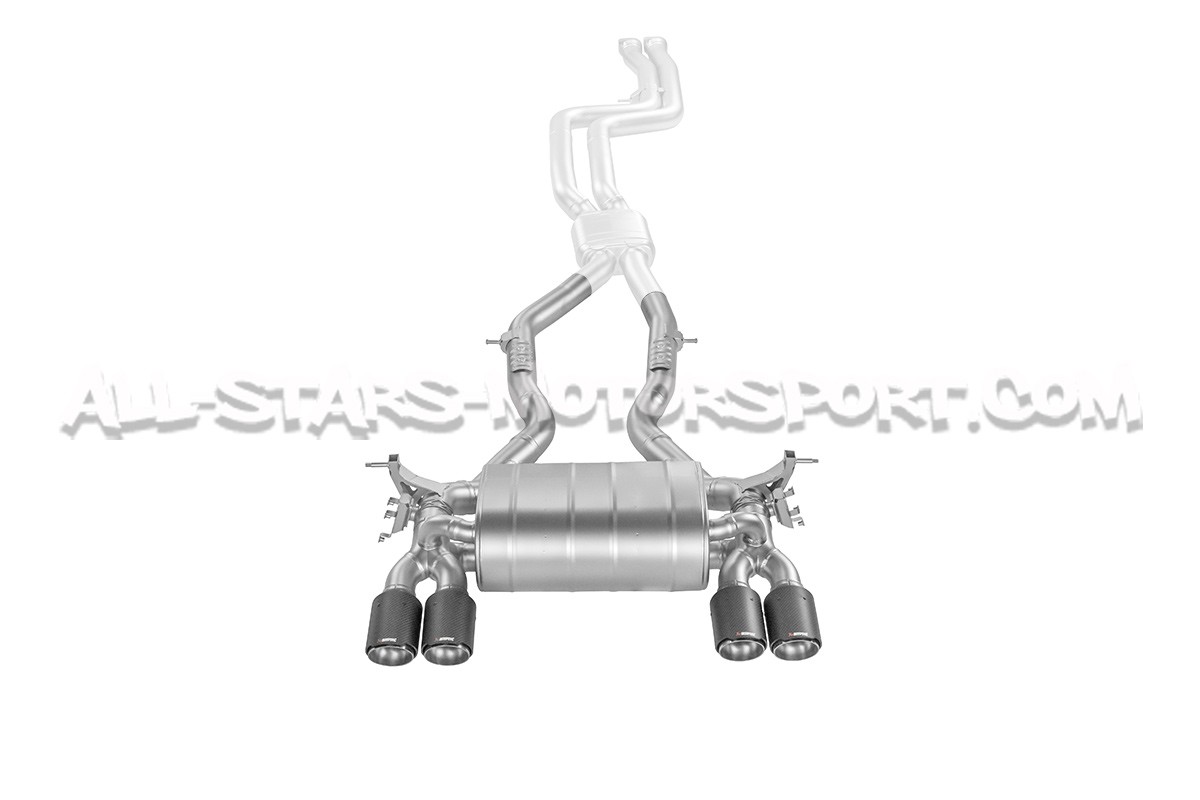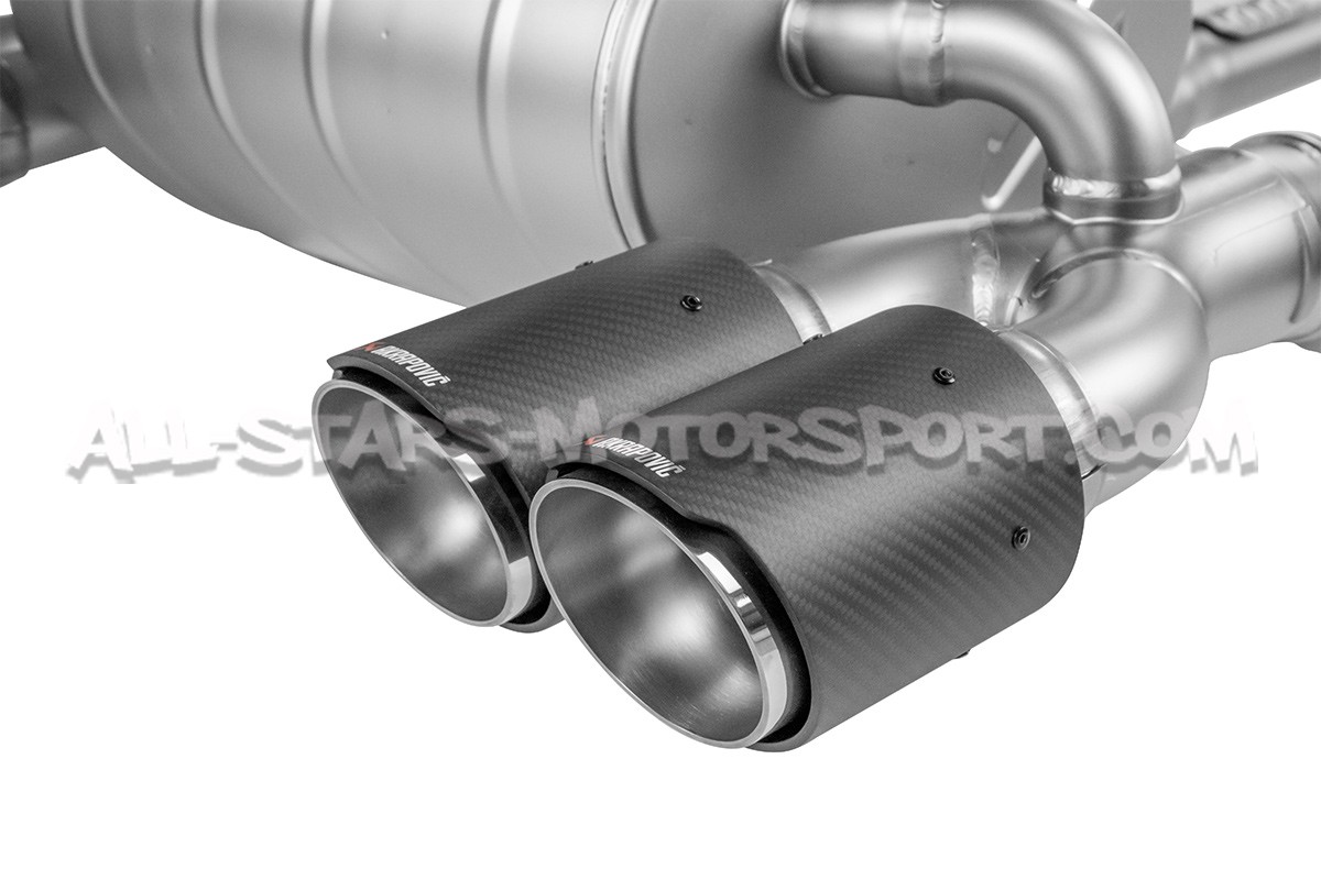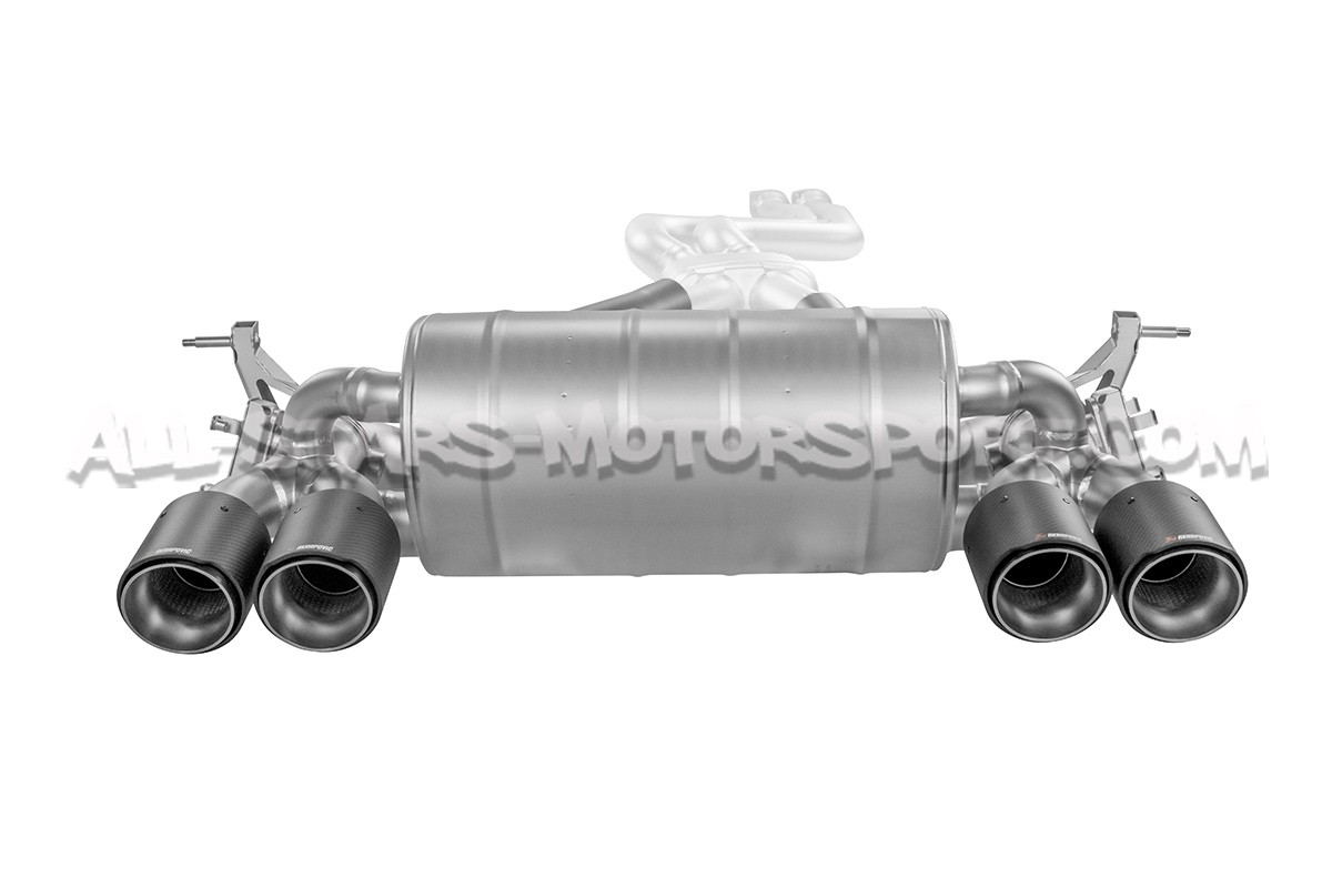 The fully titanium made Akrapovic Slip-On exhaust is designed to be a direct remplacement for the rear part of your exhaust system, giving you a deeper rumble of an exhaust note compared to stock without any drone, even when installed on an otherwise stock vehicle. Power gains are achieved, weight reduction realized and design improved with a set of four exquisite tailpipes in carbon fiber.