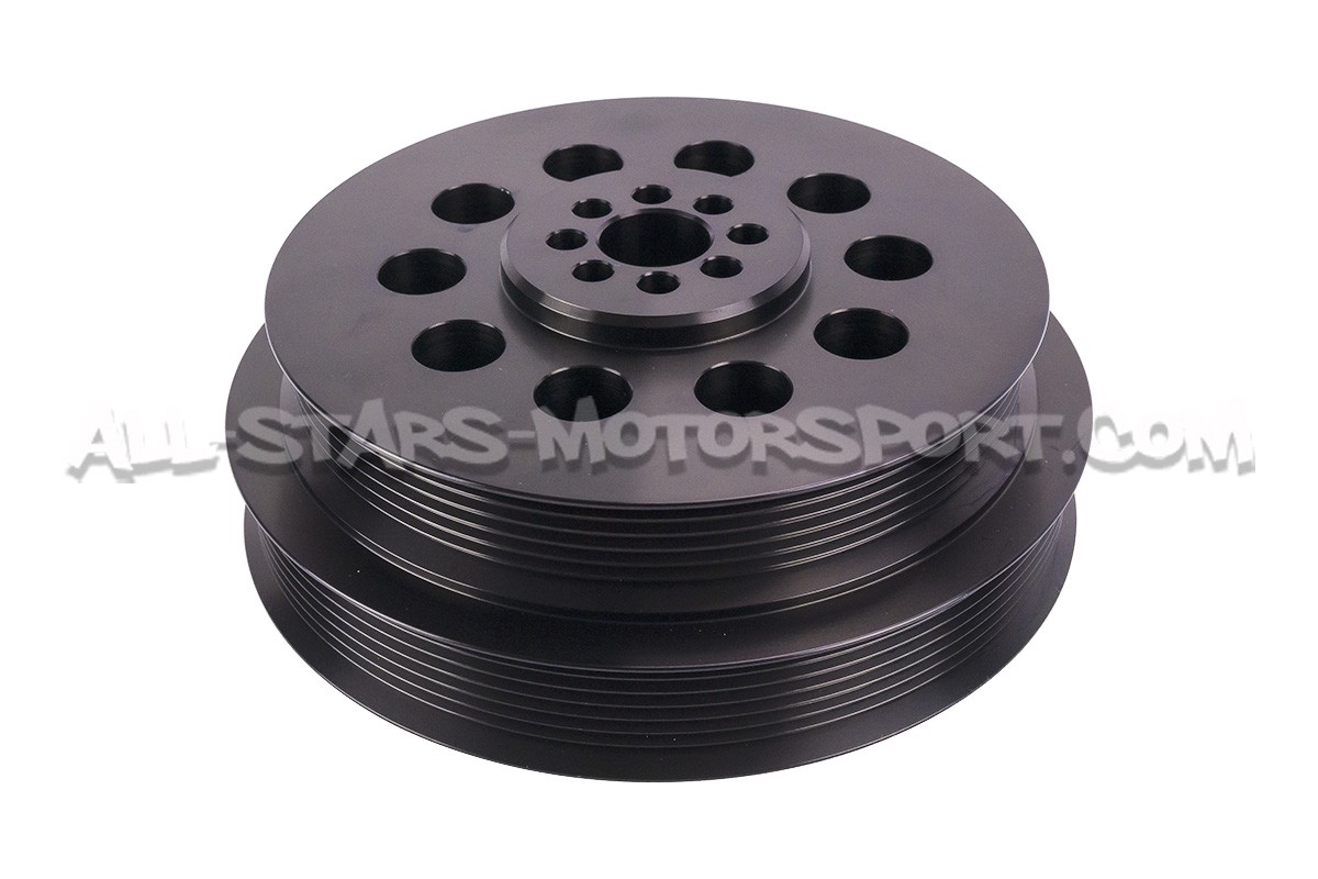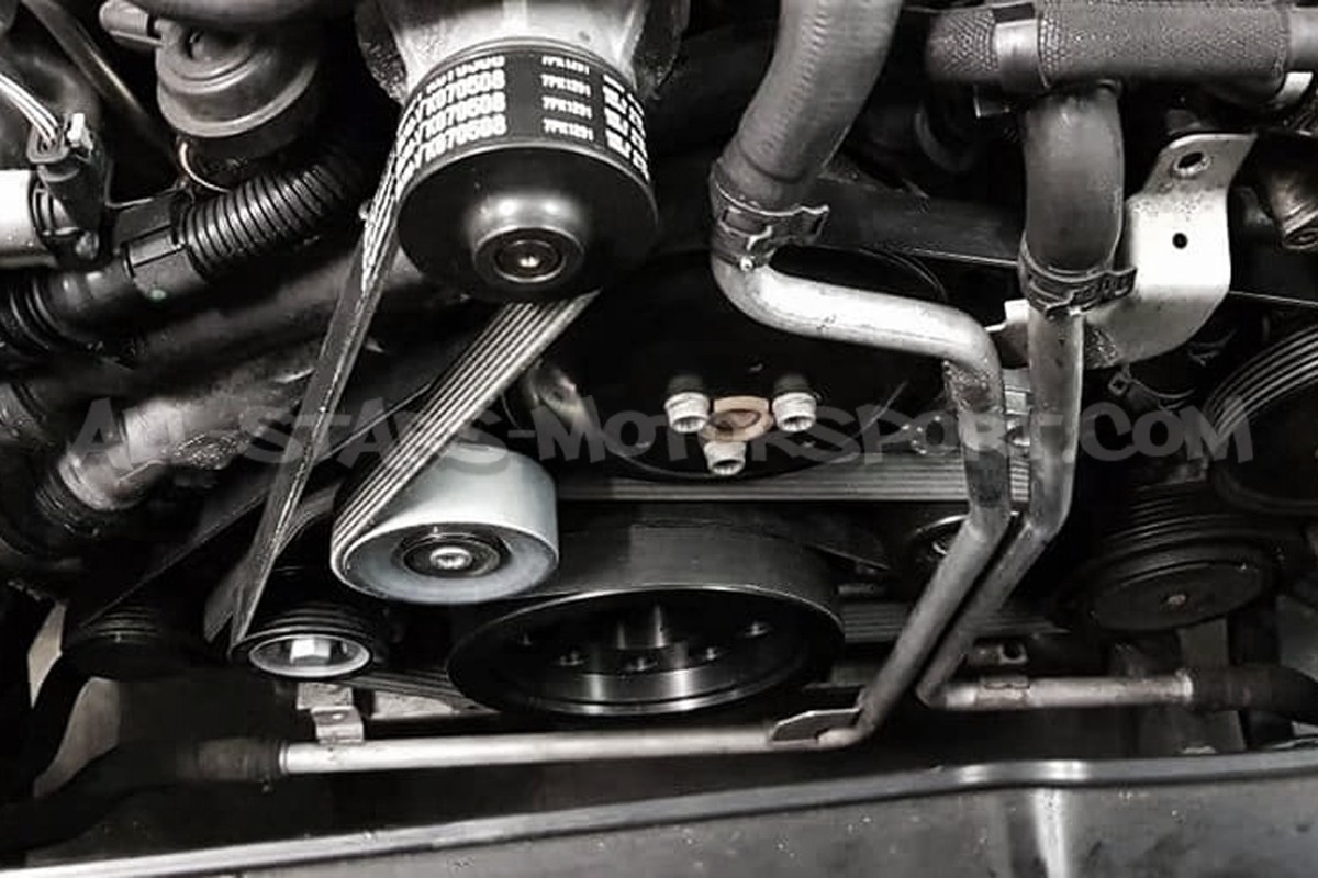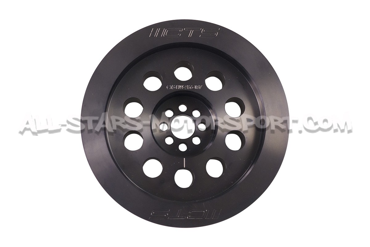The CTS Turbo crank pulley, made from precision billet T6061 aluminum, is larger diameter than the two pieces OEM pulley, you can select a 180mm or 187mm diameter according your boost gain target. Not only reducing the rotational mass of the crank, this upgrade will also increase the speed at which the supercharger spins for more boost pressure output. Increased boost pressure in conjunction with upgraded ECU software results in a dramatic increase in horsepower and torque throughout the entire powerband. This will not increase stress or excessive wear on supercharger or engine components.