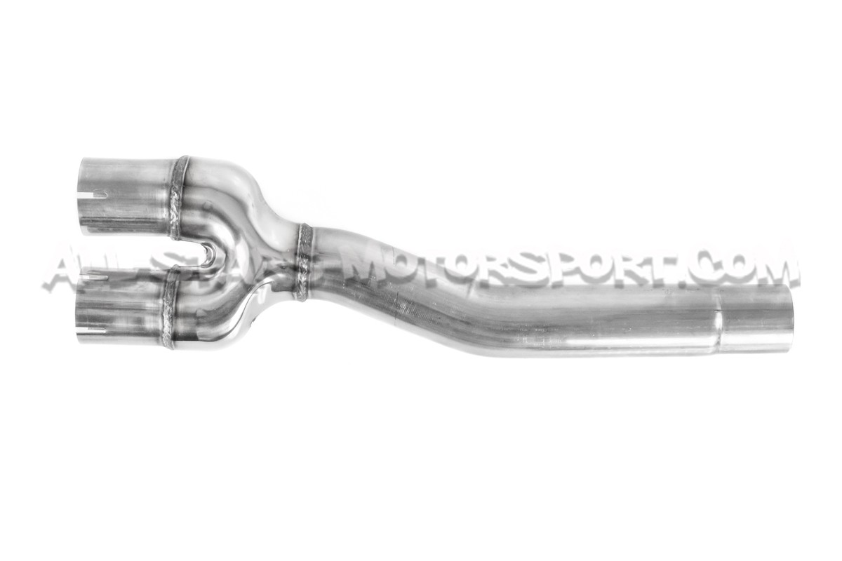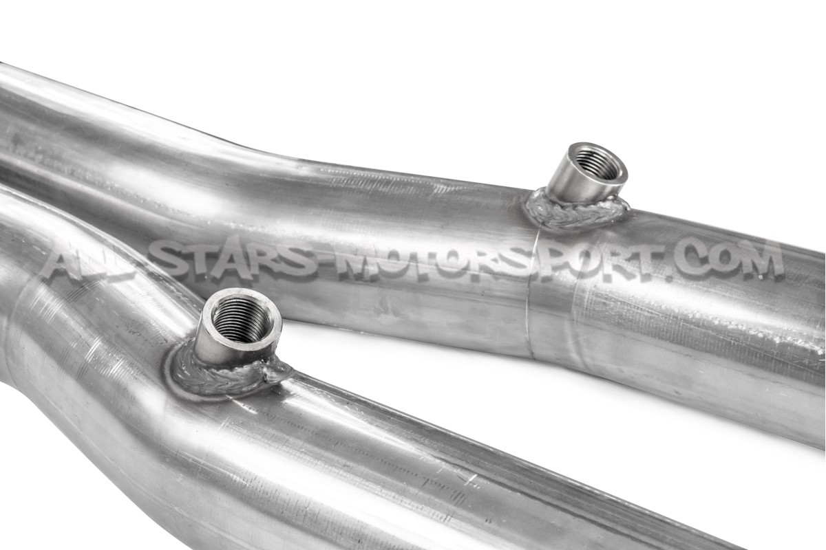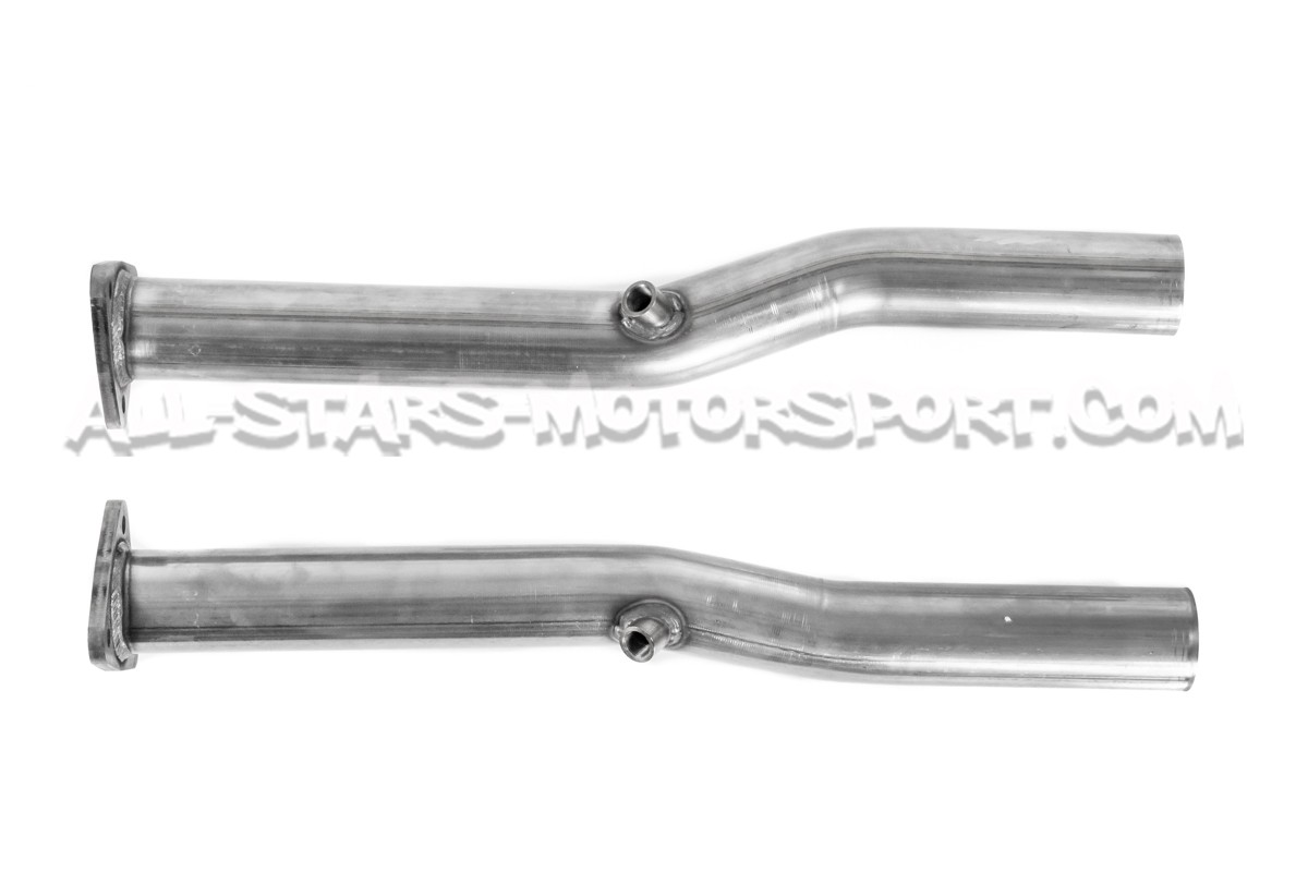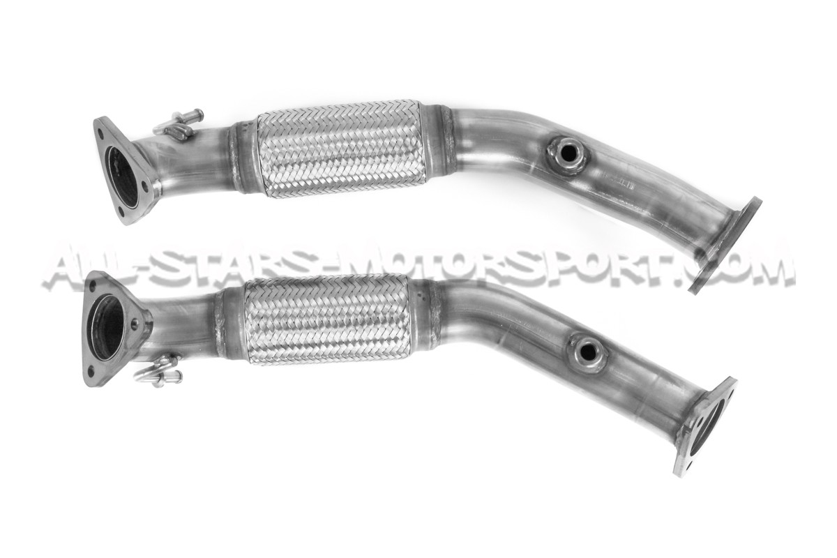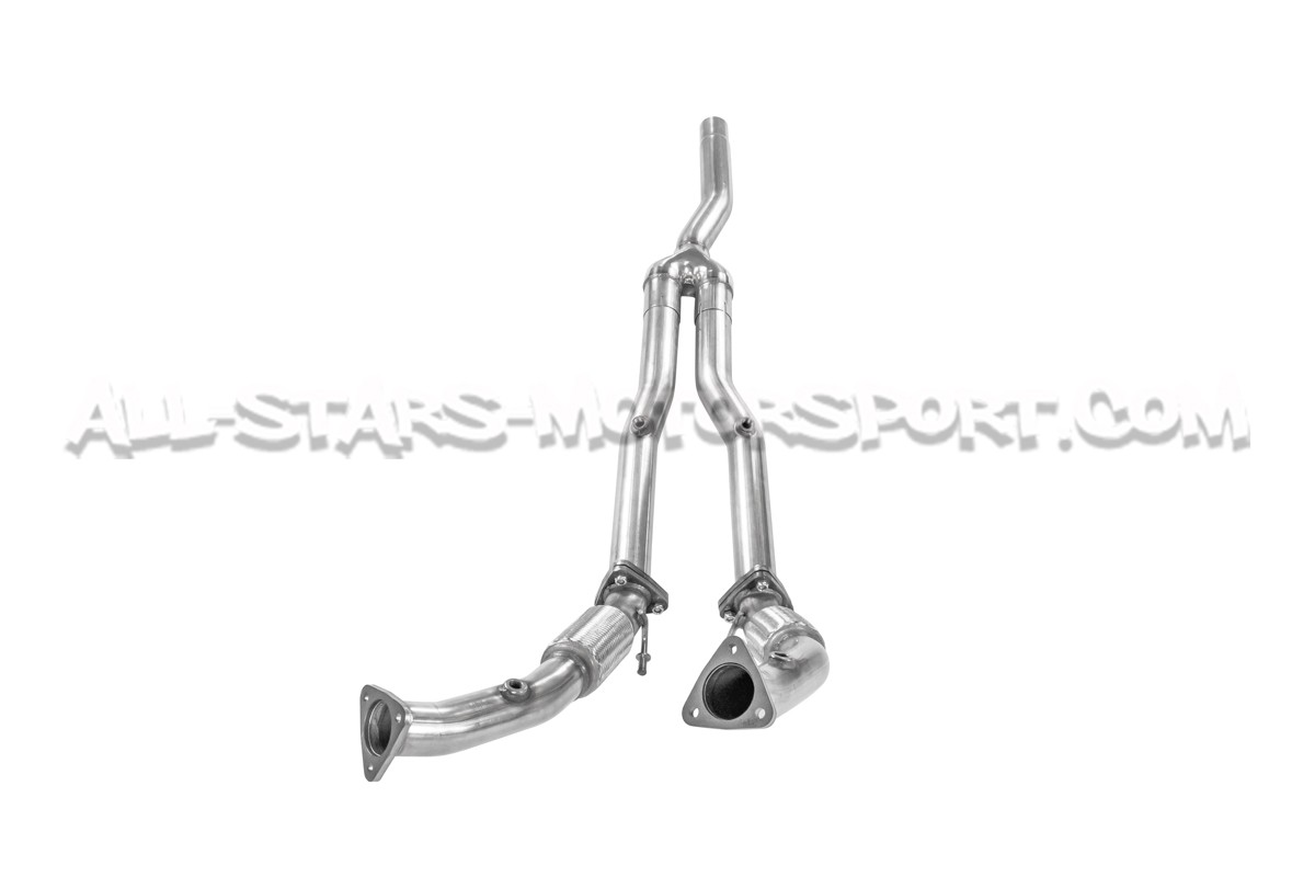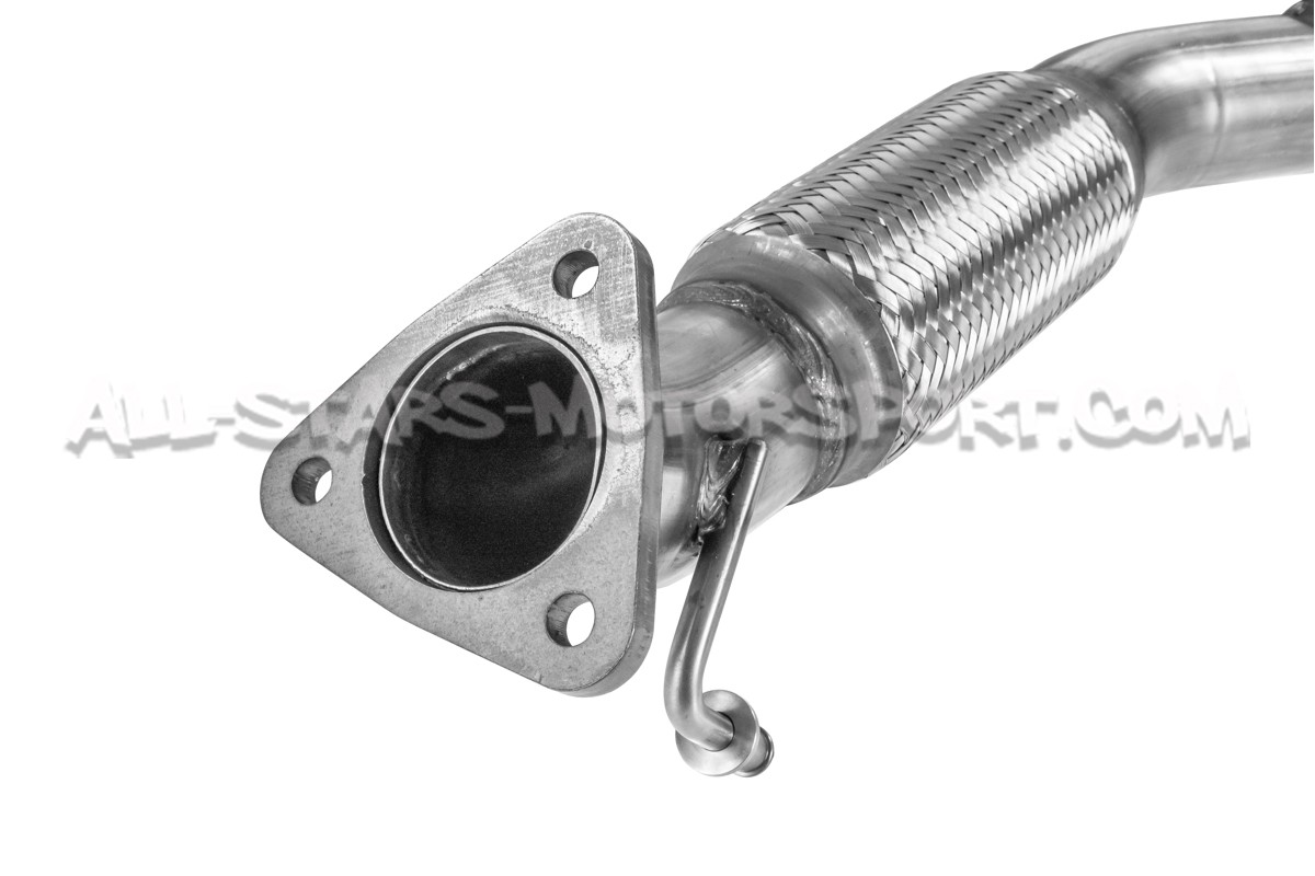 Scorpion twin de-cat section for Mk5 R32 made with T304 grade stainless steel, mandrel bent and TIG welded 2.5" / 63.5mm pipework. Fits from the collector to the original or aftermarket catback.