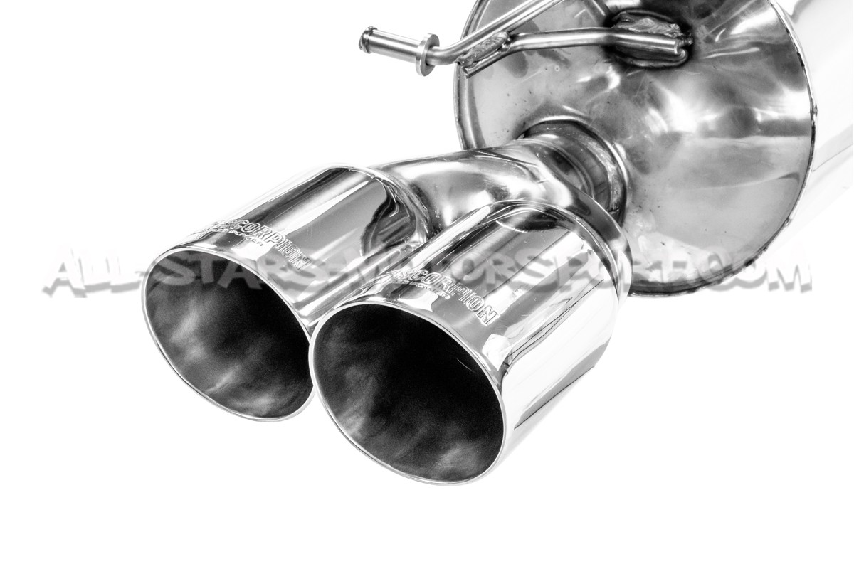 Scorpion catback system made with T304 grade stainless steel, mandrel bent and TIG welded 2.75" / 70mm pipework. Fits from the OEM or aftermarket catalyst, this catback is available with 83mm Daytona polished or black tailpipes.