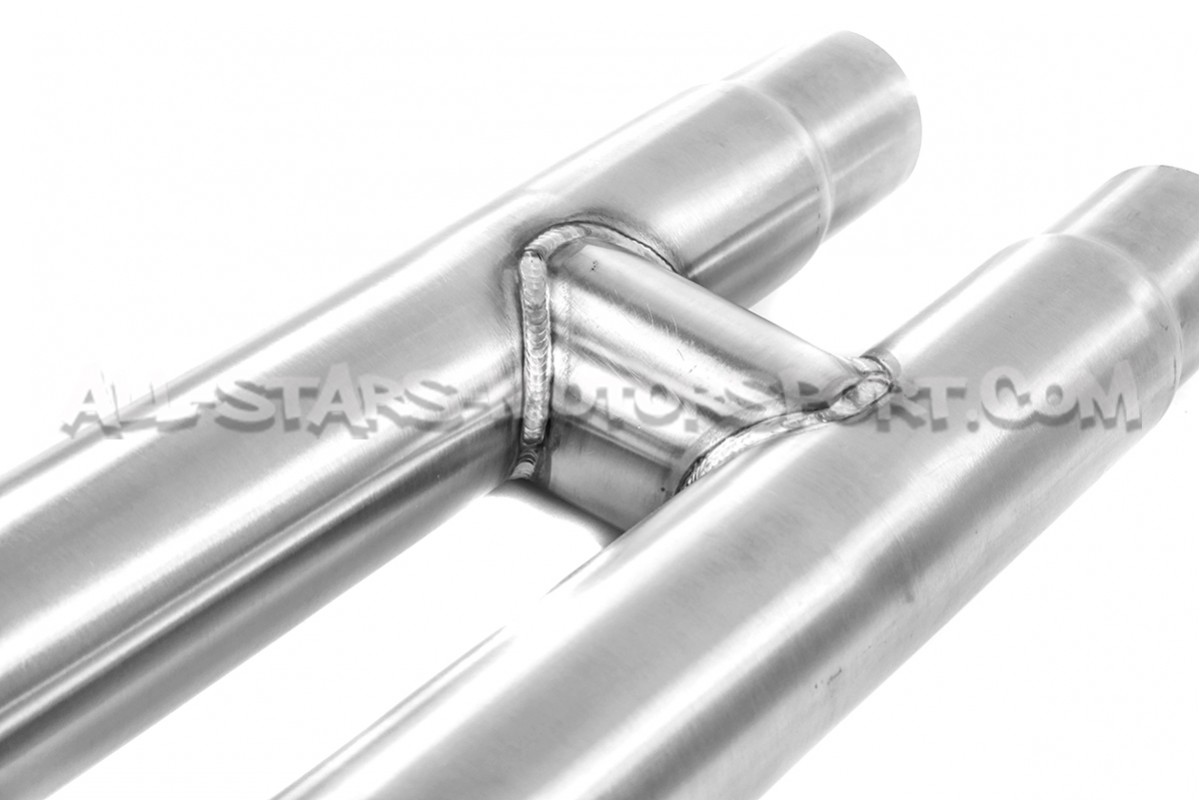The Mishimoto exhaust H pipe replaces the stock exhaust resonator with a free-flowing H pipe section to provide a more aggressive, higher pitched tone under acceleration ! This H pipe can be installe with stock or aftermarket axle backs !