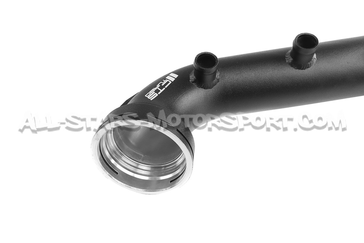 The OEM N54 charge pipe routing from the intercooler on BMW 135i E8x and 335i E9x is made from low quality plastic prone to failure even at original boost pressure ! This CTS turbo kit made from black powder coated aluminium is a direct bolt on upgrade designed to improve performance and reliability !