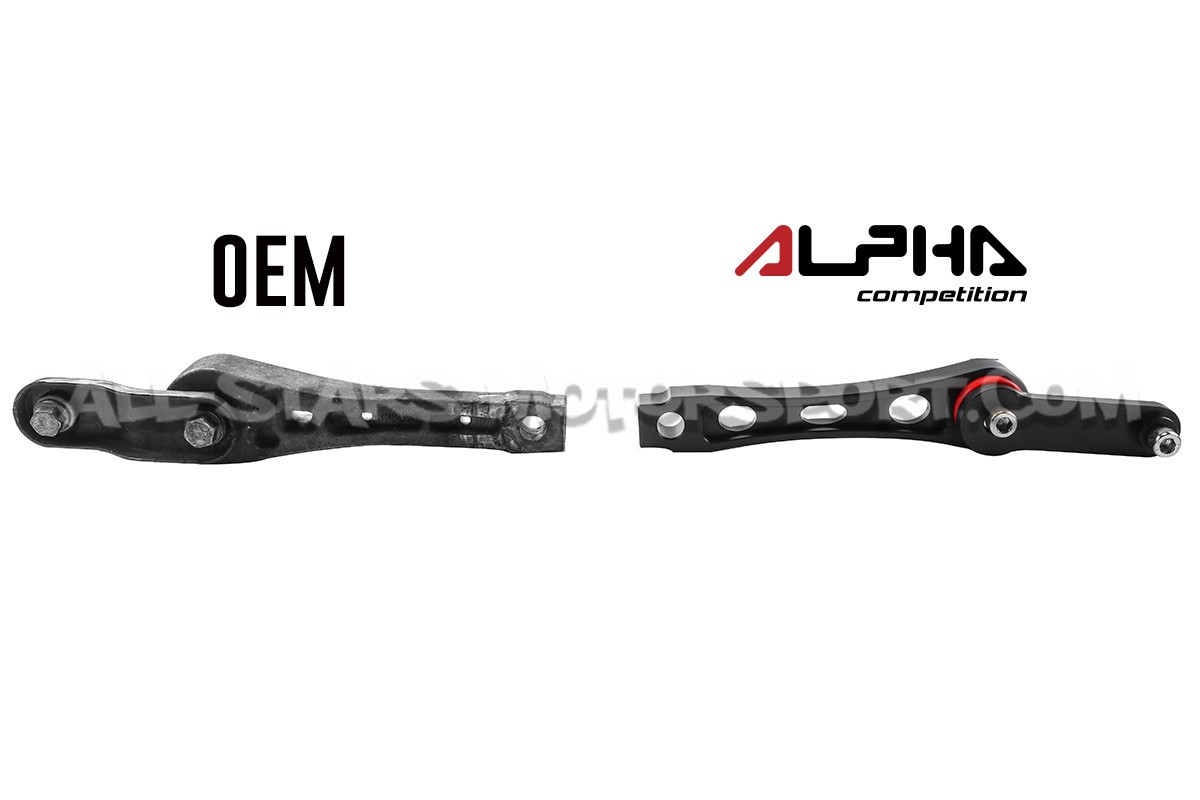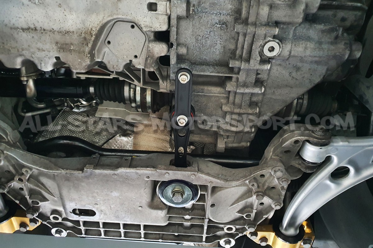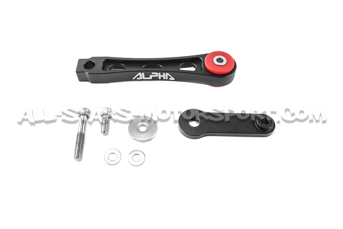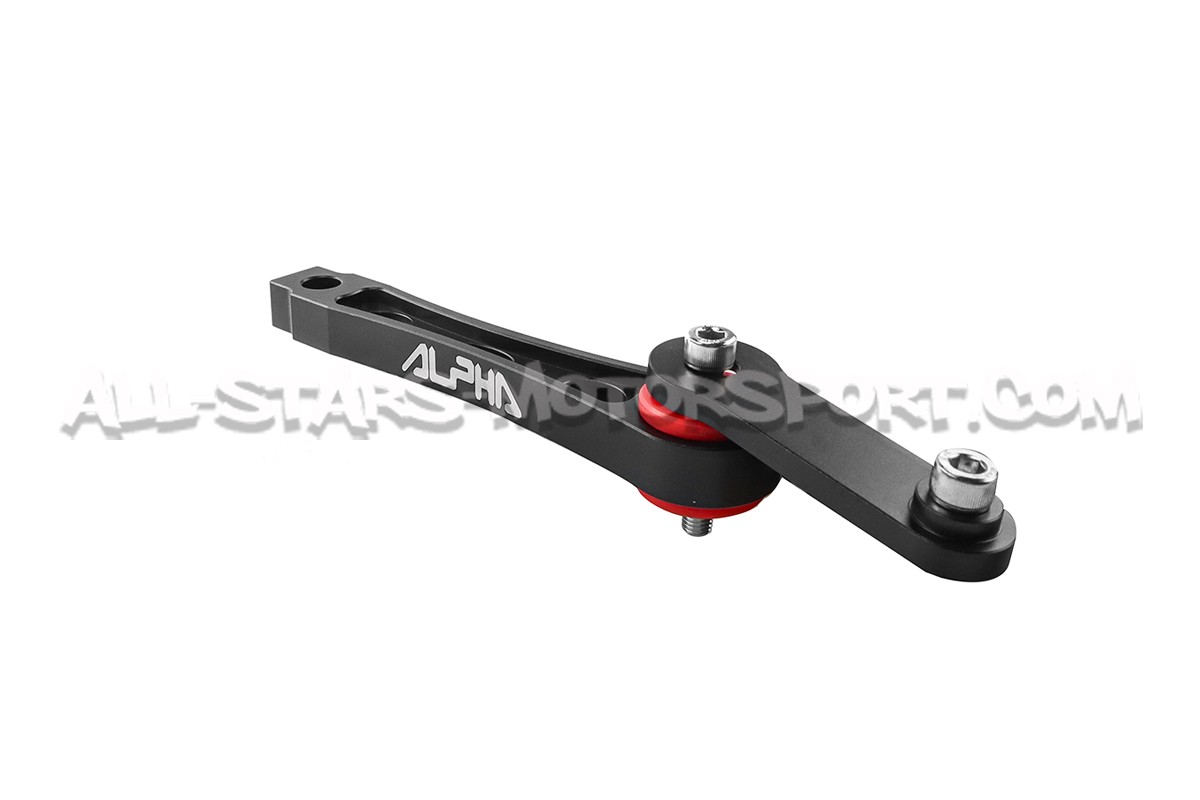 The Alpha Competition anti torque lower mount also called Dog Bone or Pendulum is a direct bolt on upgrade for the Golf 5 /Golf 6 / A3 8P / Leon 2 or TT Mk2. Made from high quality 6061-T6 billet aluminium with reinforced 80A bushings, this lower mount is designed to limit the engine / gearbox movements in order to increase hangling and efficiency under hard driving !