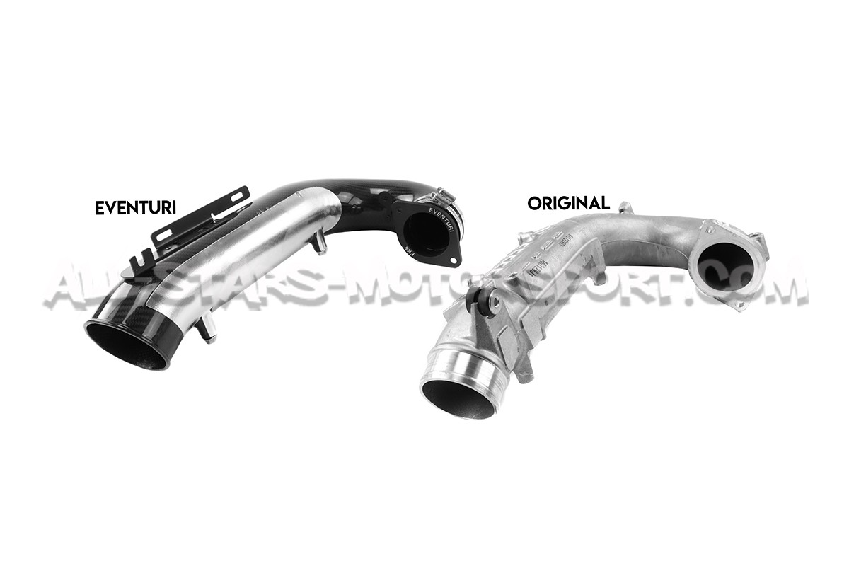 Perfect upgrade for the famous Eventuri V2 intake (Airbox + MAF pipe), this Eventuri carbon fiber turbo inlet pipe connecting the turbo to the MAF tube increases the airflow by 53% via a 78mm diameter vs 63mm for the OEM pipe. Offering a better air flow, air volume and lower intake temperatures, this Civic Type R FK2 turbo pipe shown a huge 18 extra hp on stage 2 !