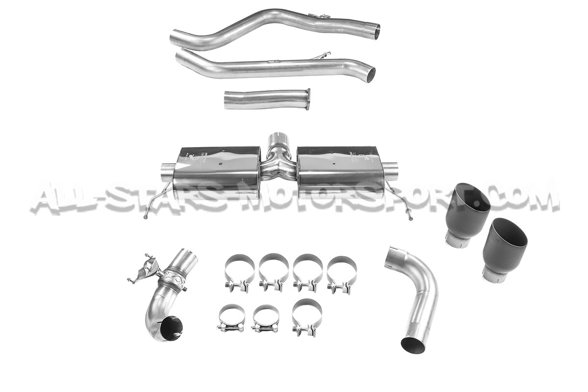 Scorpion catback system made with T304 stainless steel, mandrel bent and TIG welded 3" / 76mm pipework. Featuring exhaust valves working with OEM sport mode, it fits from the GPF catalyst section and comes with polished or black 114mm Daytona tailpipes and all required hardware for direct installation !