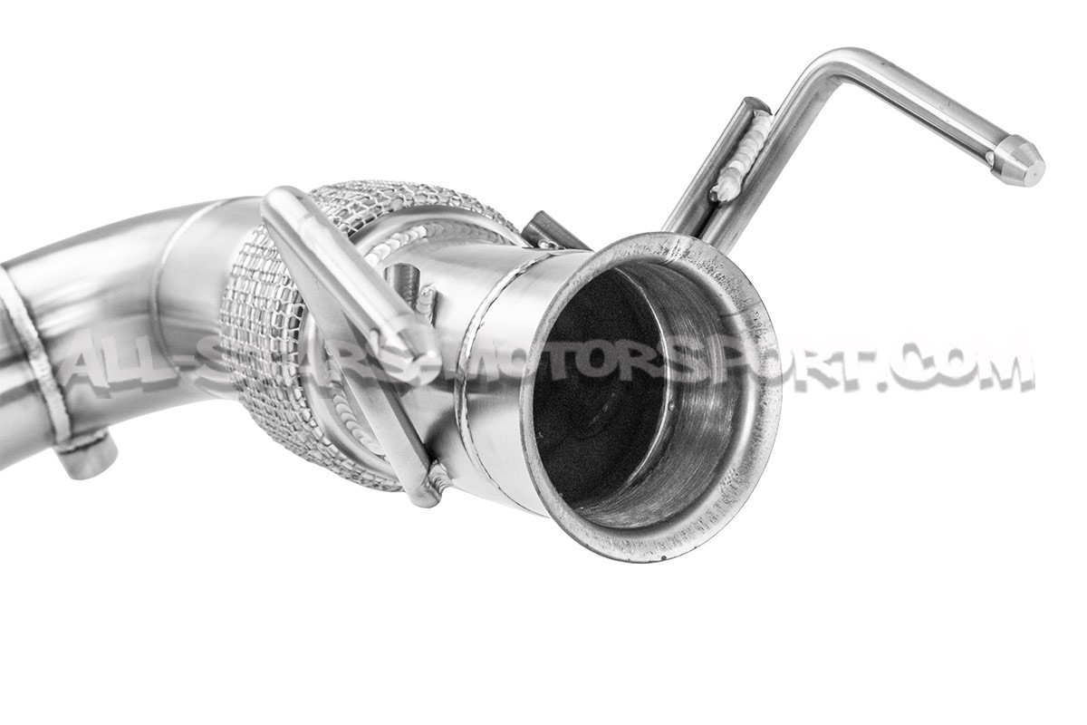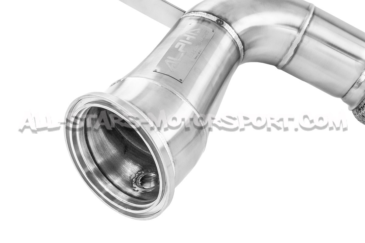 The Alpha Competition downpipe with decat for the Mini Cooper S / JCW / GP3 F56 is made from high quality T304 stainless steel, mandrel bent and TIG welded 2.75" / 70mm pipework. Direct replacement for the OEM catalyst from the turbo to the front pipe, this downpipe if for sure the best deal available on the market !
