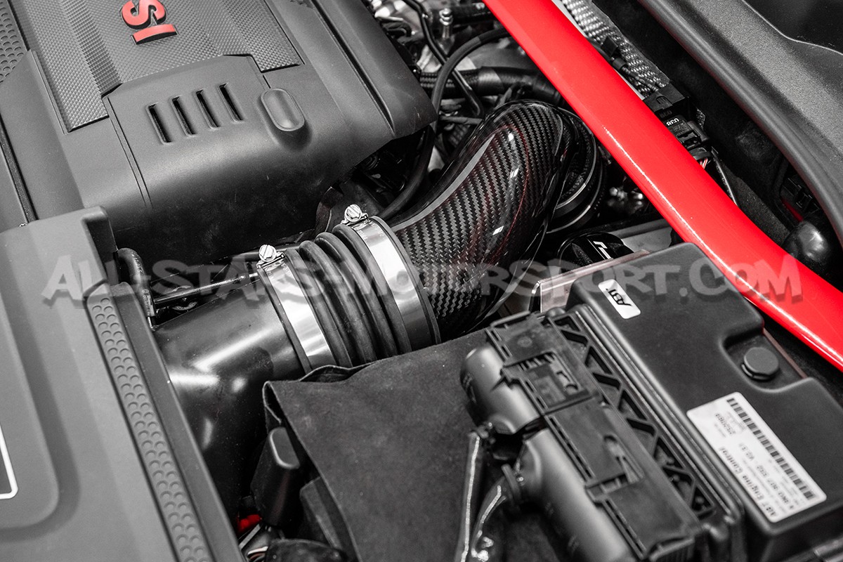 This APR intake pipe made of high quality carbon fiber fits without any modification between the turbo inlet and the airbox of the 2.0 TFSI EA888.3 engine fitted among others in the Leon 3 Cupra / Golf 7 GTI / Golf 7 R or S3 8V. With a high glossy finish and a larger volume than the standard plastic hose, this intake pipe is designed to bring better performance and a very trendy race style to your engine !