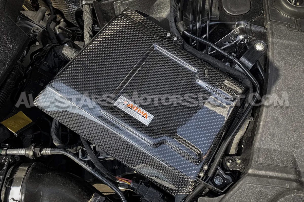 Benchmark in the market of high performance carbon fiber intakes, Armaspeed offers, as a complement to this range, this carbon fiber ECU cover to be installed without modification on 2.9 and 3.0 TFSI engines in order to bring a race / chic touch to the Audi S4 / RS4 B9 and S5 / RS5 F5 engine bay