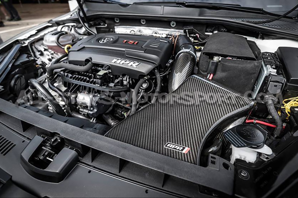 Reference in terms of intake for the 1.8 / 2.0 TFSI EA888.3 engines equipping the Leon 3 Cupra / Golf 7 GTI / Golf 7 R or S3 8V, this carbon fiber APR intake fits without any modification in order to bring power, torque, sound and aesthetics. Featuring a high-end glossy finish, a larger volume than the standard plastic element and a washable and reusable cotton air filter, this intake is great value for the MQB platforms sharing the EA888.3 engine !