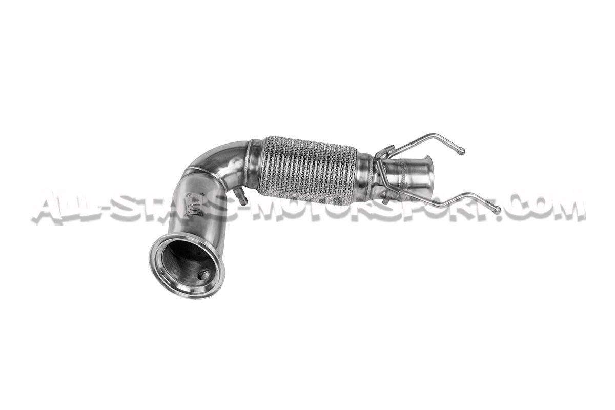 This stainless steel Scorpion decat downpipe fits without any modification, between the turbo and the standard or performance front pipe of the BMW 135i F4x / 235i F4x in order to remove the main catalyst !