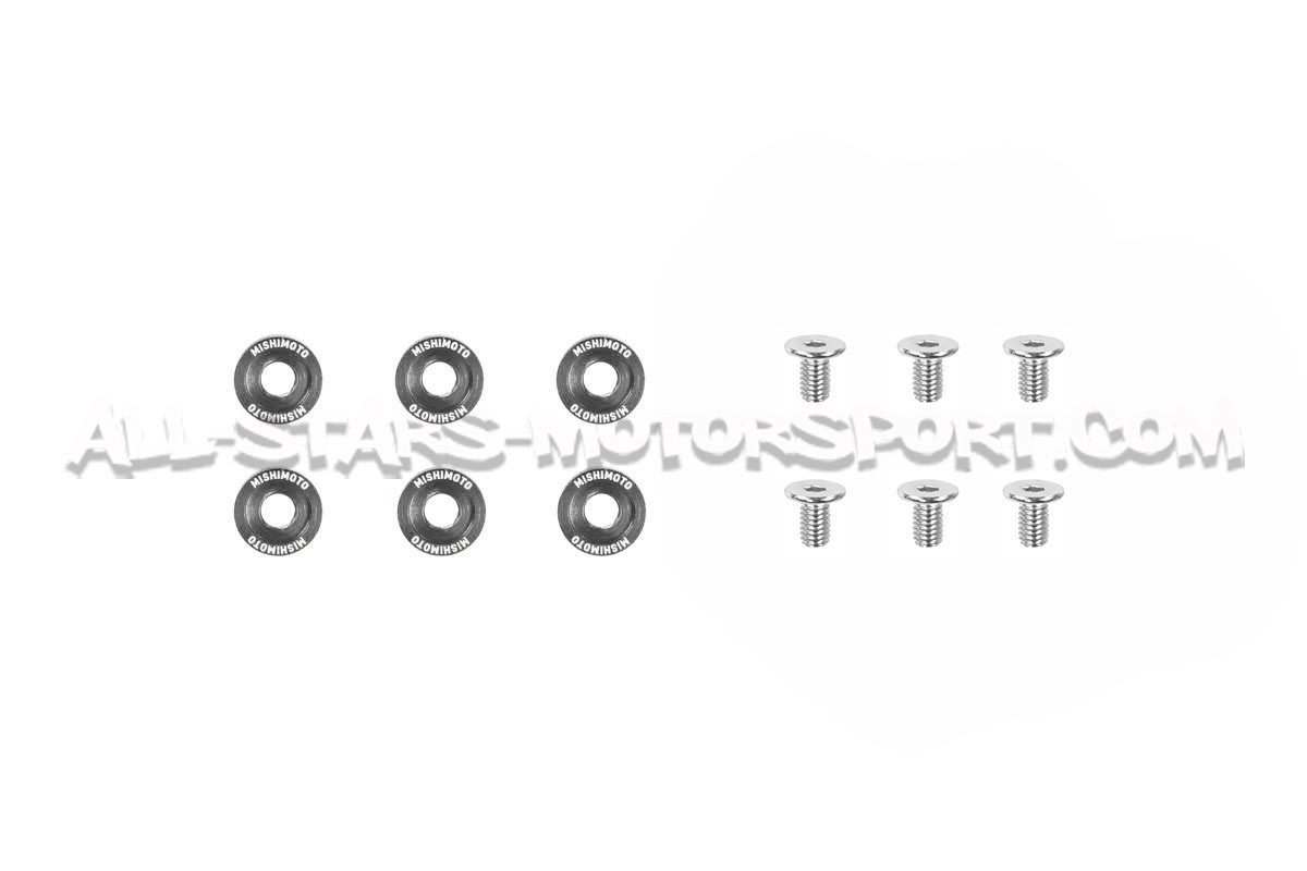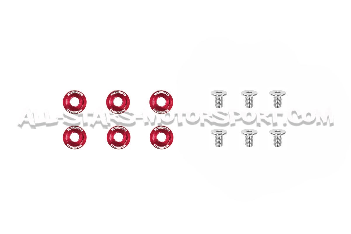 Made from high quality aluminium and available in a range of colours, this Mishimoto screw and washer kit will replace the M6 diameter screws fitted to the body panels (wings, bumpers, bonnets) and mechanical components of your vehicle. Universal and delivered in a pack of 6, these washers and their M6 stainless steel screws are available in 16.7mm and 20mm diameters to suit a multitude of applications.