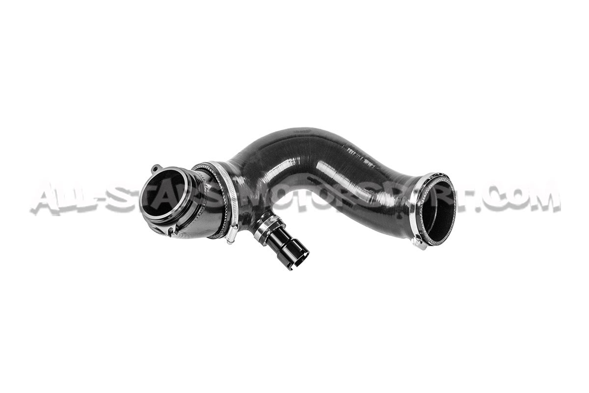 This Racingline Performance turbo inlet kit, featuring an aluminum turbo inlet elbow and a large volume silicone induction hose, increases the air flow routing from the air box to the turbo. Compatible with the Continental turbos fitted to the 2.0 TFSI EA888.4 engines of the Golf 8 R / S3 8Y / Cupra Formentor or Golf 8 GTI CS this turbo inlet kit can be installed in addition to a performance intake or with the OEM airbox.