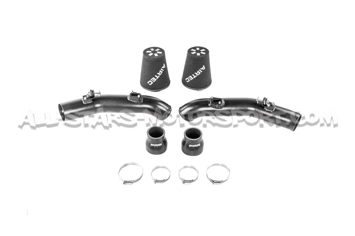 The Airtec intake kit for the Nissan R35 GTR is a direct replacement for the standard airboxes and pipes, designed to remove the 600hp mark restrictions on the VR38 engines. Featuring two washable foam filters, two 80mm diameter black aluminum intake pipes with silicone couplers and all the assembly hardware, this intake fits without modification but requires ECU remapping.