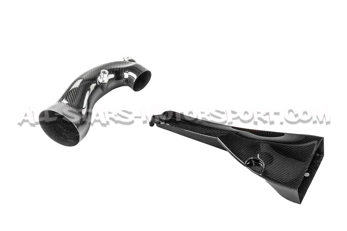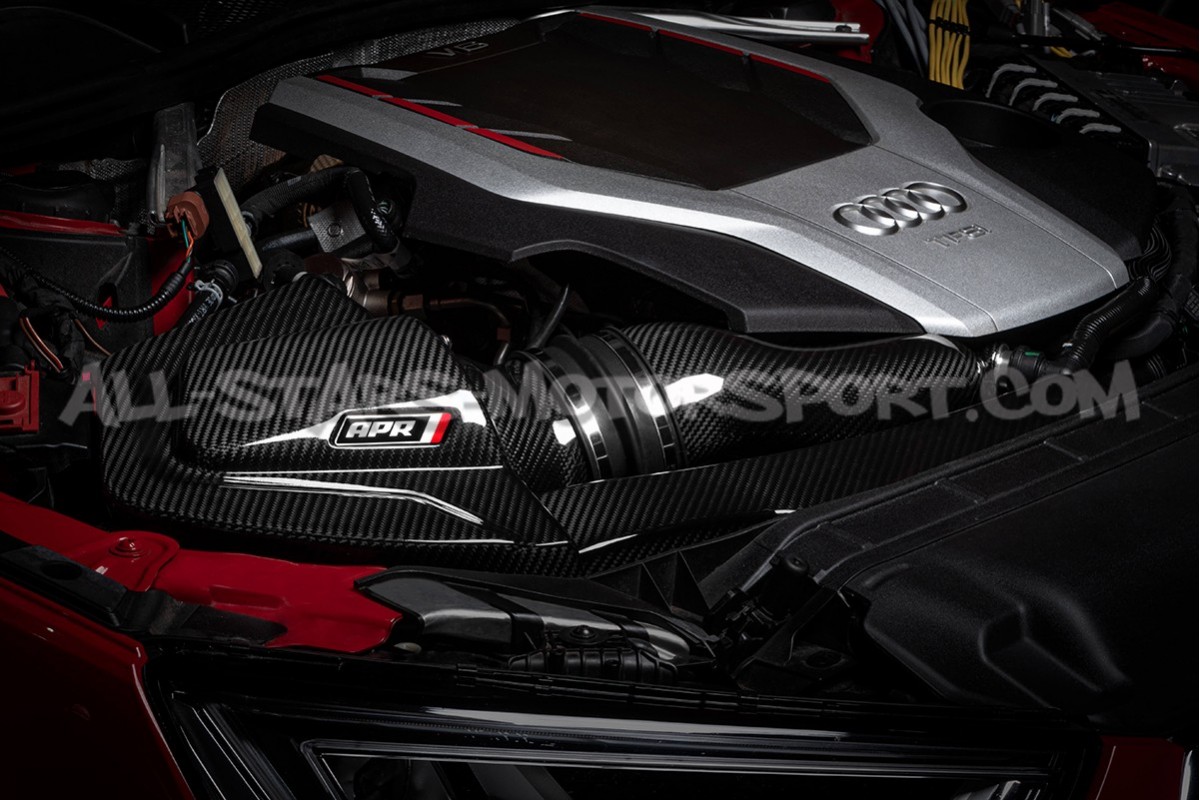 This APR intake, made from high quality carbon fiber, fits from the turbos on the 3.0 TFSI engines of the Audi S4 B9 and Audi S5 F5, to increase airflow by 36% offering an average gain of 19awhp on stage 1. Coming with a specific airbox equipped with a washable air filter, a twin intake pipe, an air diffuser and all hardware required, this APR intake system fits without any modifications as a direct replacement for OEM parts.