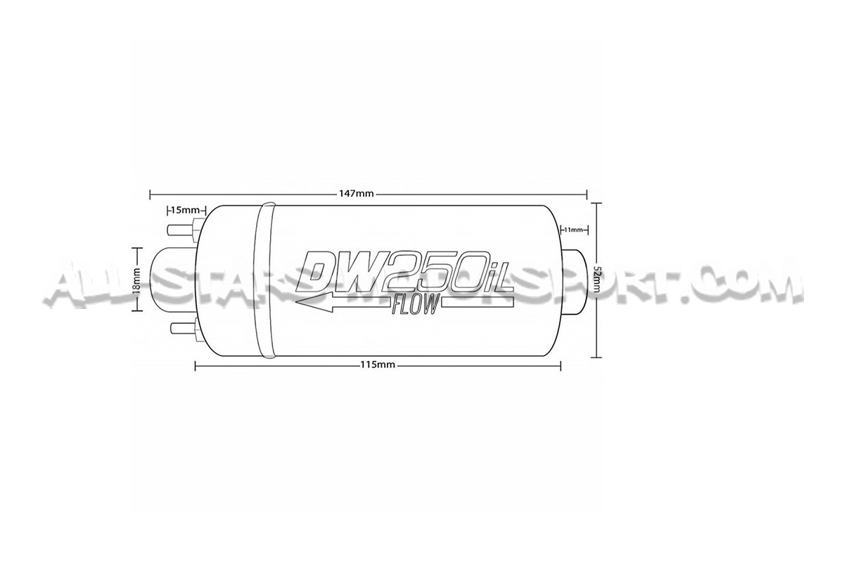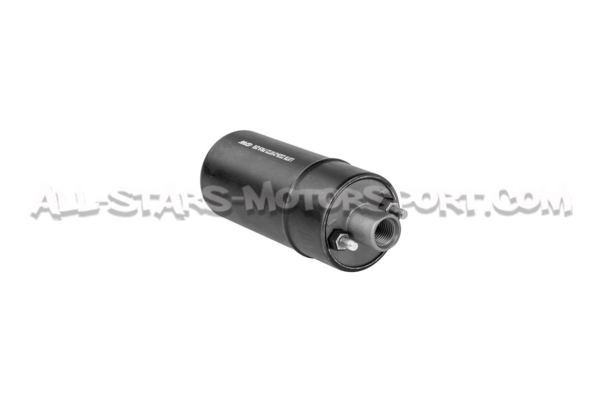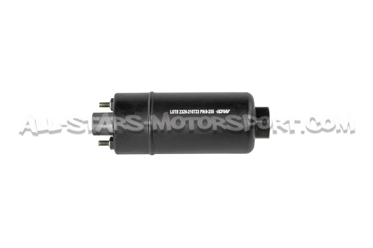 This Deatschwerks DW250iL external fuel pump, 100% E85 compatible and backed with a 3 years warranty, is capable to quietly deliver 250 liters per hour via the Dash 6 inlet and outlet ports designed for an easy in-line installation