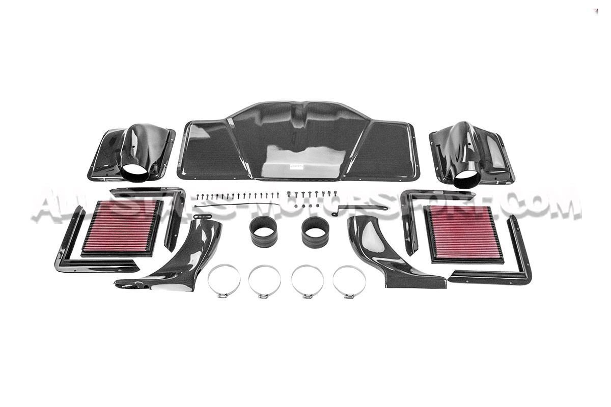 Known as one of the world's most prestigious intake system manufacturers, Gruppe M offers this carbon fiber intake called Ram Air, specifically designed for direct fitting to the 4.2 V8 engines of the Audi RS6 C5. With a design unique in the world, this complete intake system, developed and manufactured in Japan, offers a gain in power and torque at all RPMs, as well as an aggressive sound under load. In addition to these excellent technical properties, this carbon fiber kit will bring a modern and sporty look to the engine bay thanks to its high quality glossy finish!