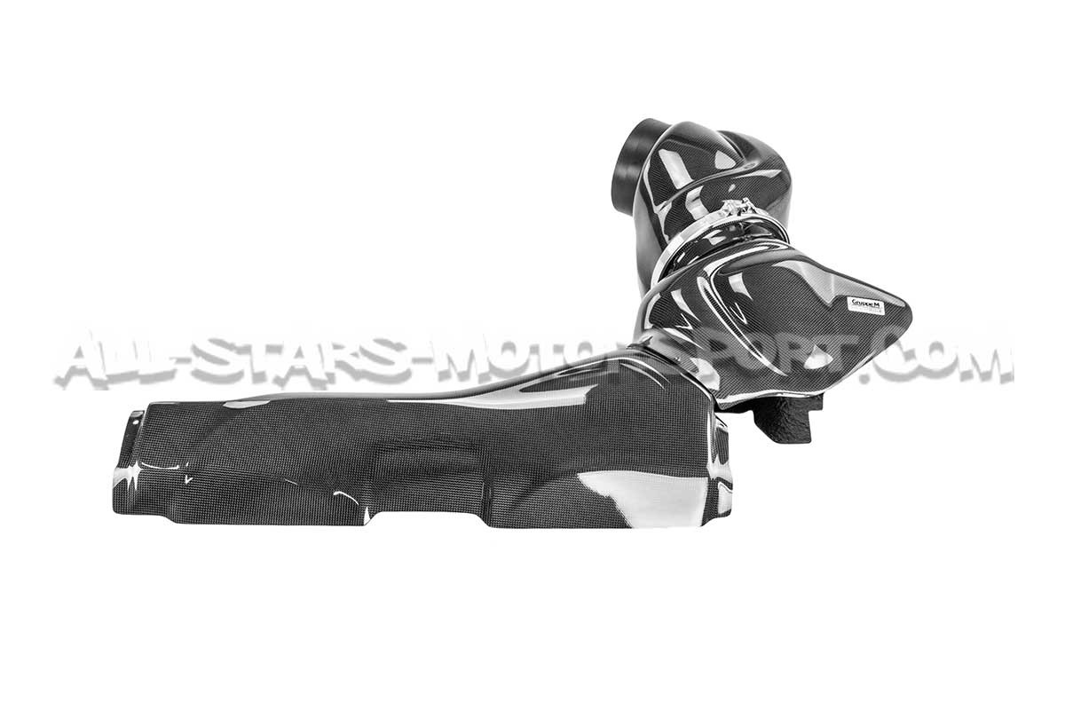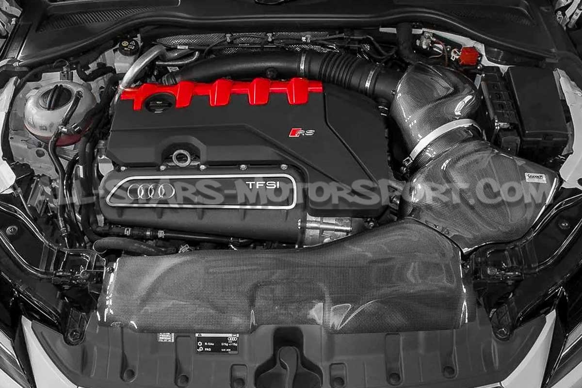 Known as one of the world's most prestigious intake system manufacturers, Gruppe M offers this carbon fiber intake called Ram Air, specifically designed for direct fitting to the 2.5 TFSI engines of the Audi TT RS 8S. With a design unique in the world, this complete intake system, developed and manufactured in Japan, offers a gain in power and torque at all RPMs, as well as an aggressive sound under load. In addition to these excellent technical properties, this carbon fiber kit will bring a modern and sporty look to the engine bay thanks to its high quality glossy finish!