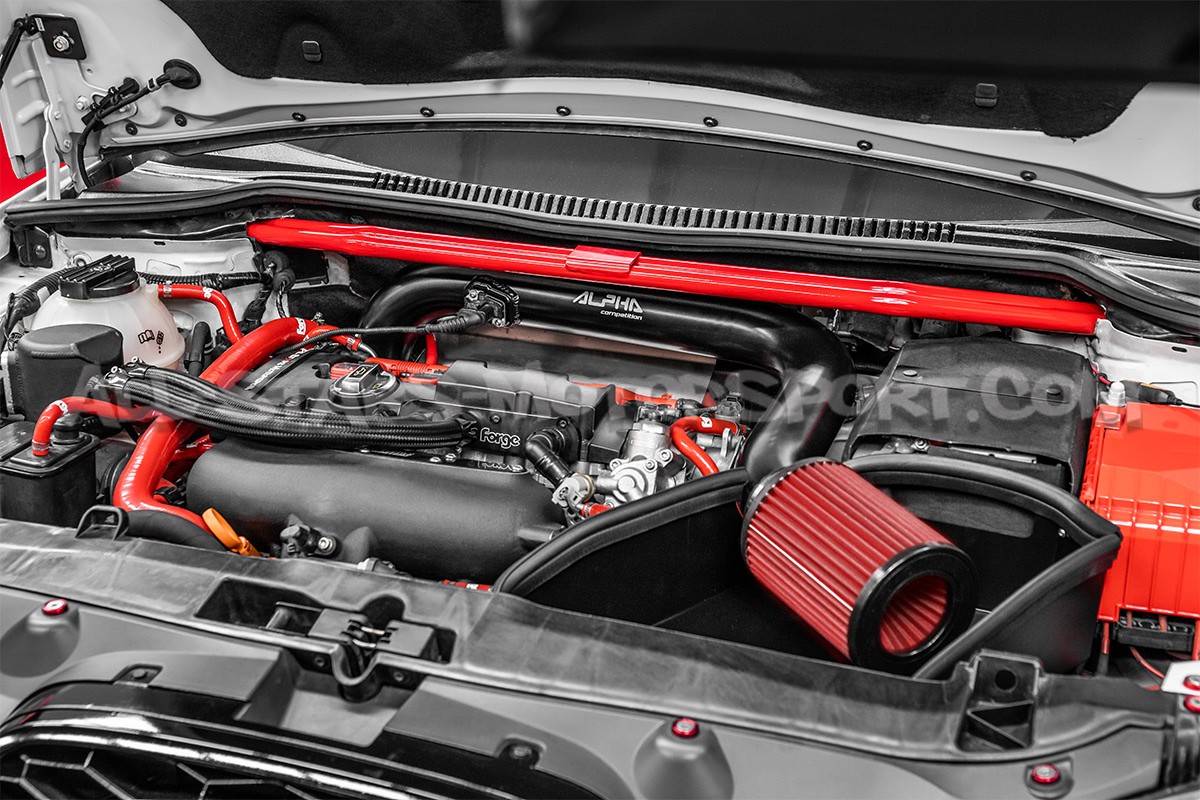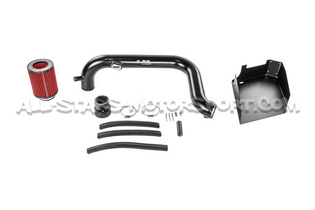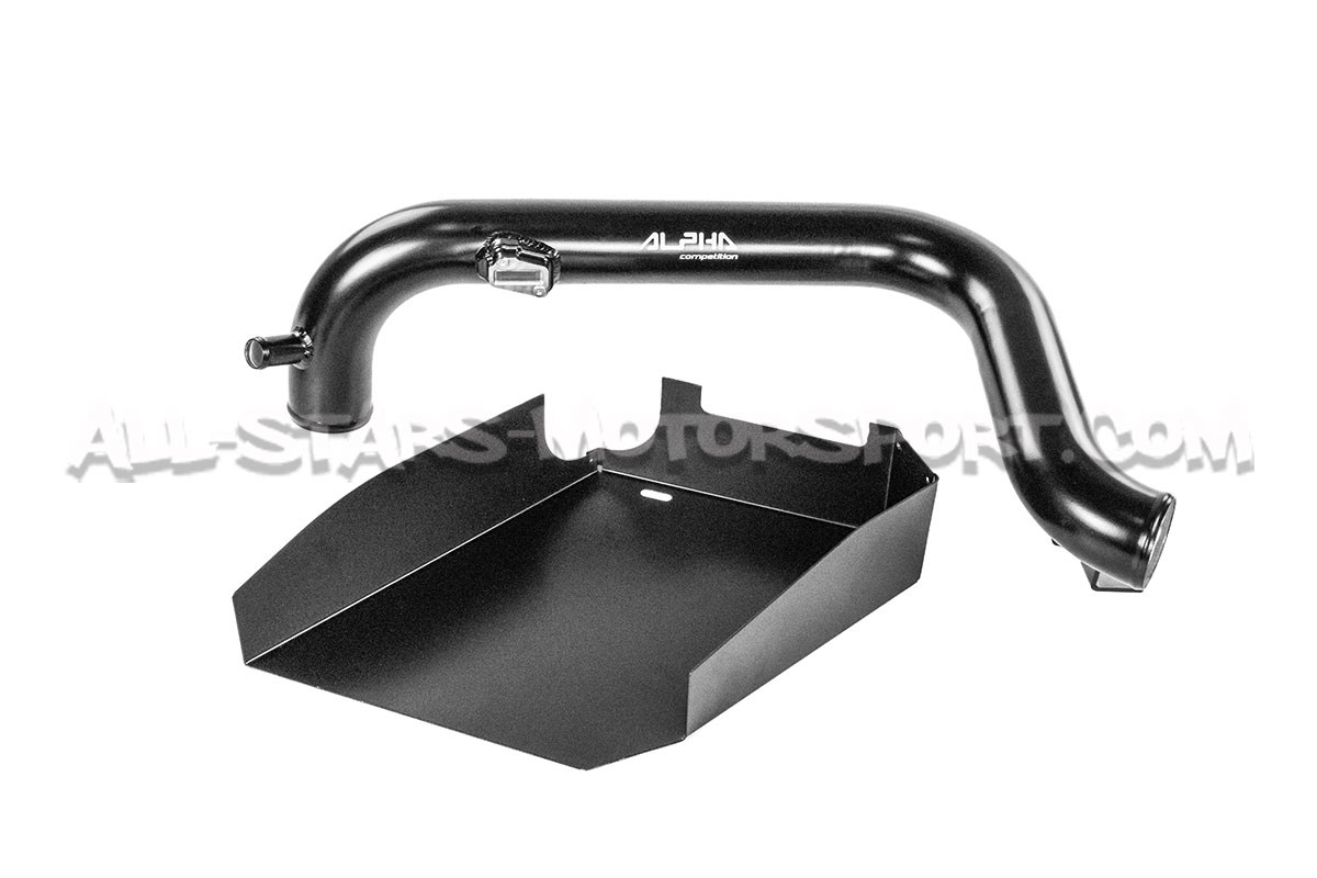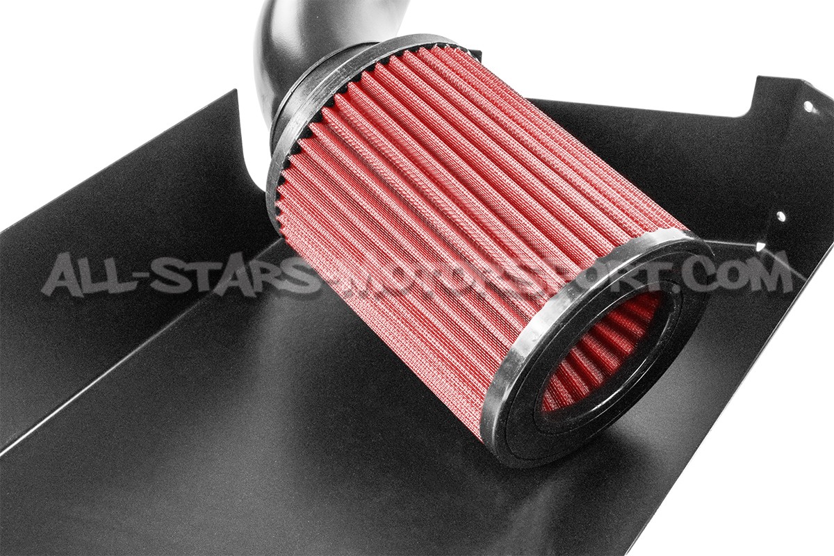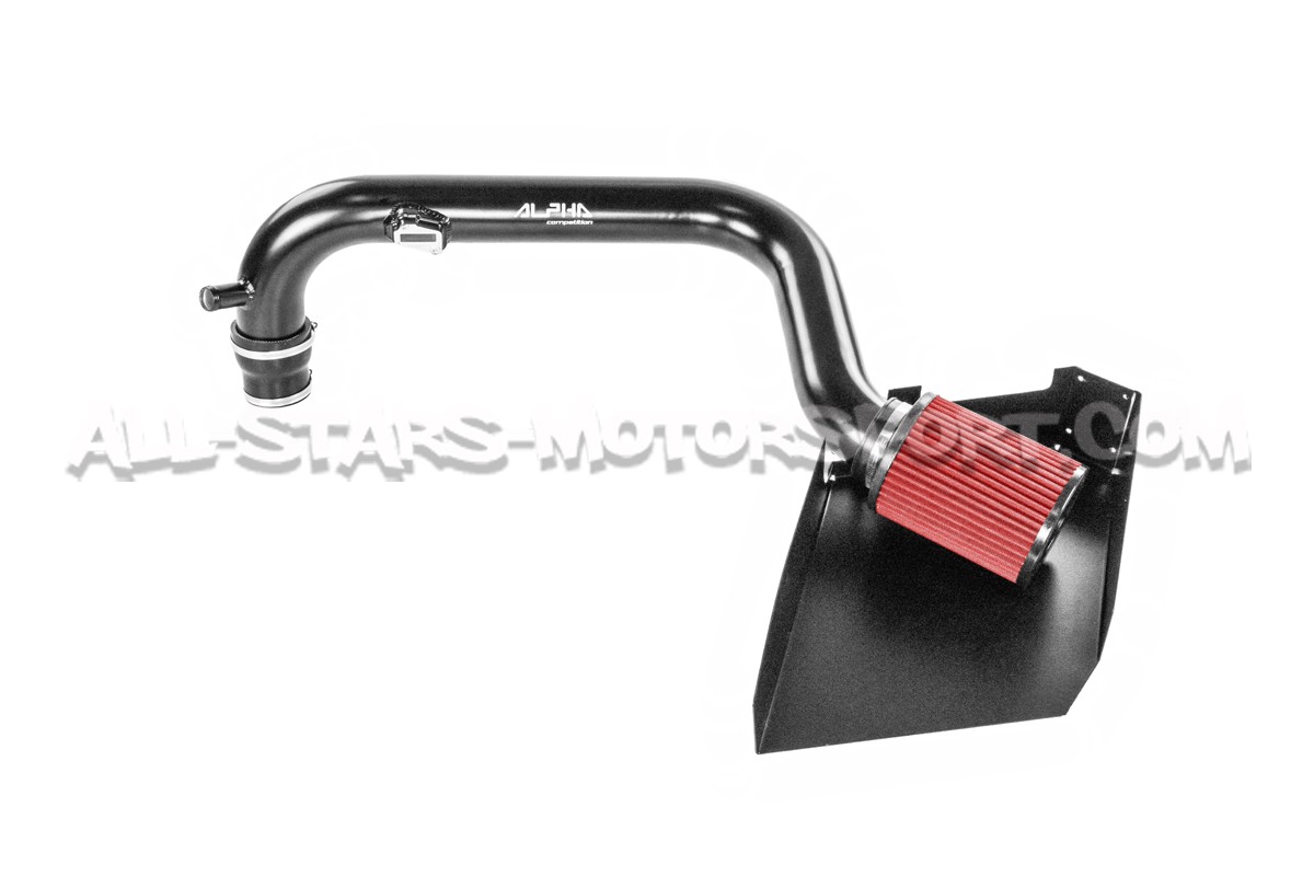 Installed as a direct replacement for the standard intake system on the 2.0 TFSI EA113 engines fitted to the Audi S3 8P /Golf 5 GTI / Golf 6 R / Scirocco R or Leon 2 Cupra, this Alpha Competition intake features an aluminium intake pipe connecting, without restriction, the turbo to a washable multi-layer filter, supplied with air by an aluminium diffuser which also acts as a heat shield. Coming with its mounting kit, including a plug for the dump valve return port (not used with K03 turbo), this intake system will offer an aggressive sound, a sleek look but above all an average gain of 12hp on a stage 1 tuned engine.