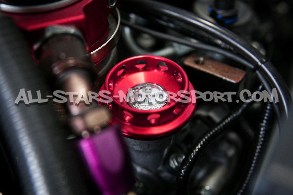 Intended for the EJ20 / EJ25 and FA20 / FA24 engines of the Subaru Impreza / BRZ and Toyota GT86 / GR86, this HKS oil cap is made of high quality aluminium (duralamin) with a red Alumite surface treatment and fits without modification to add a colourful touch to the engine bay.