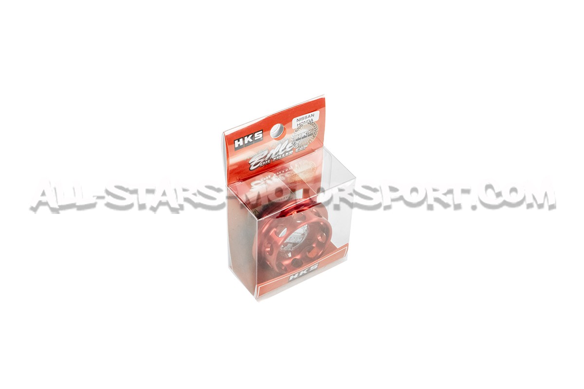 Intended for the CA18 / SR20 / VQ35 / VQ37 and VR38 engines of the Nissan 200sx / 350Z / 370Z and R35 GTR, this HKS oil cap is made of high quality aluminium (duralamin) with a red Alumite surface treatment and fits without modification to add a colourful touch to the engine bay.
