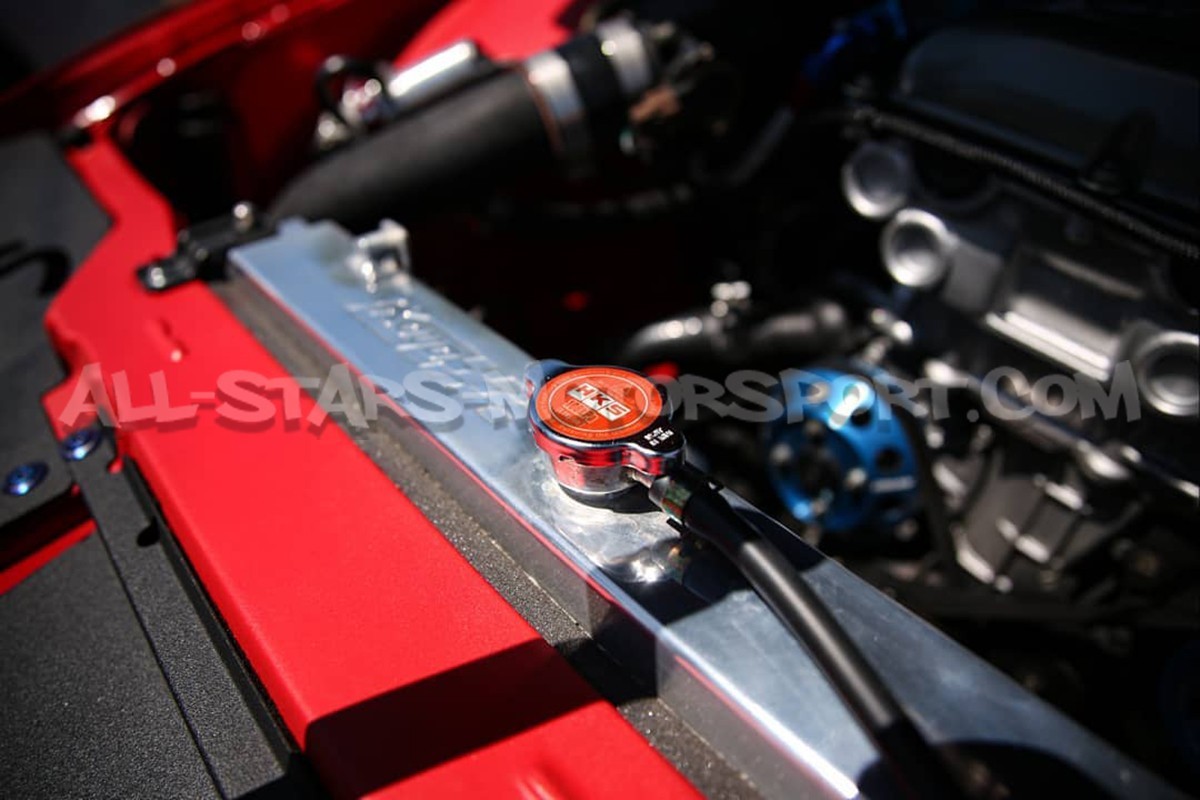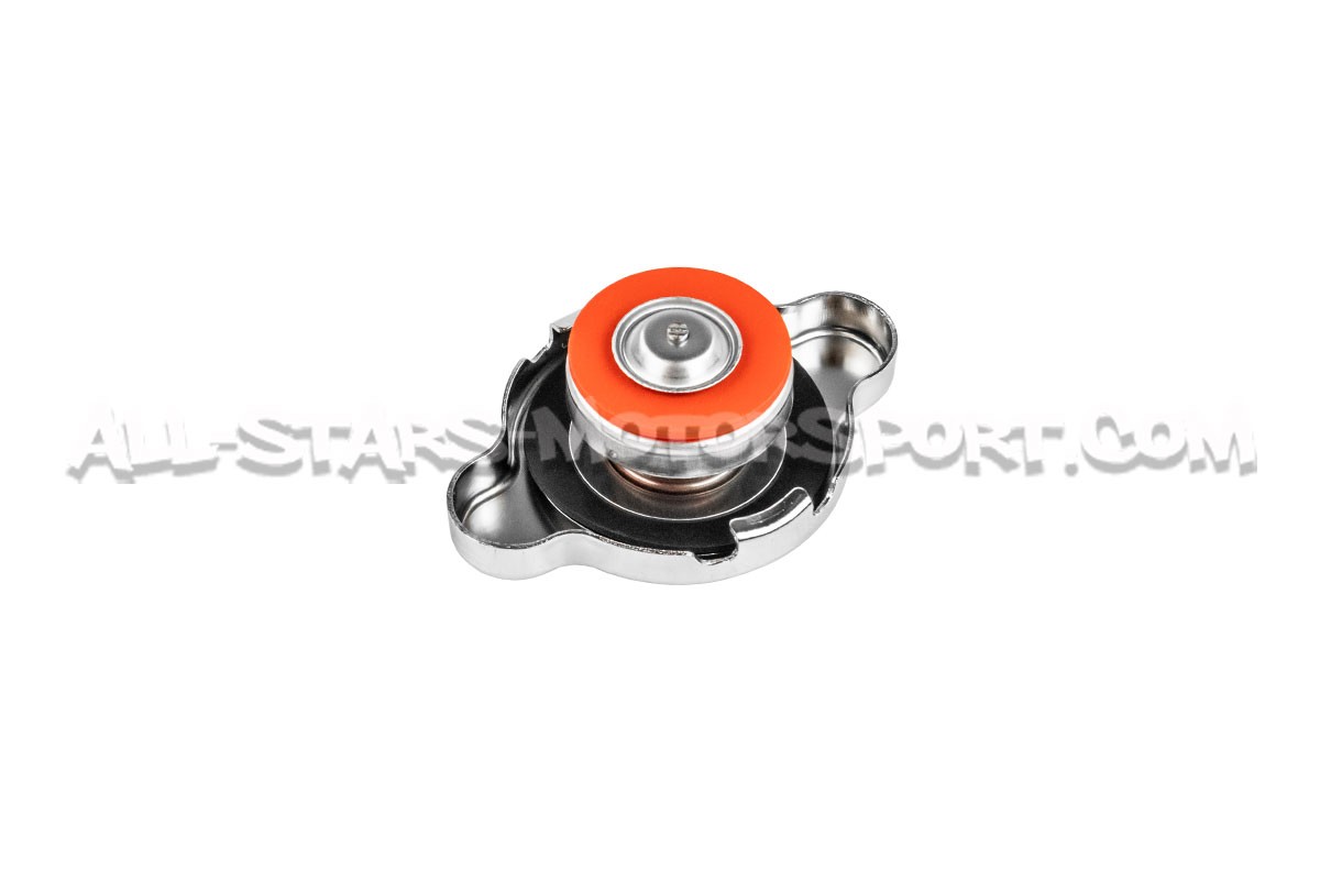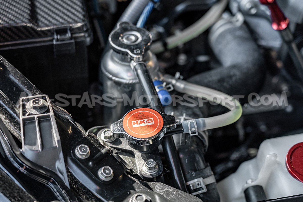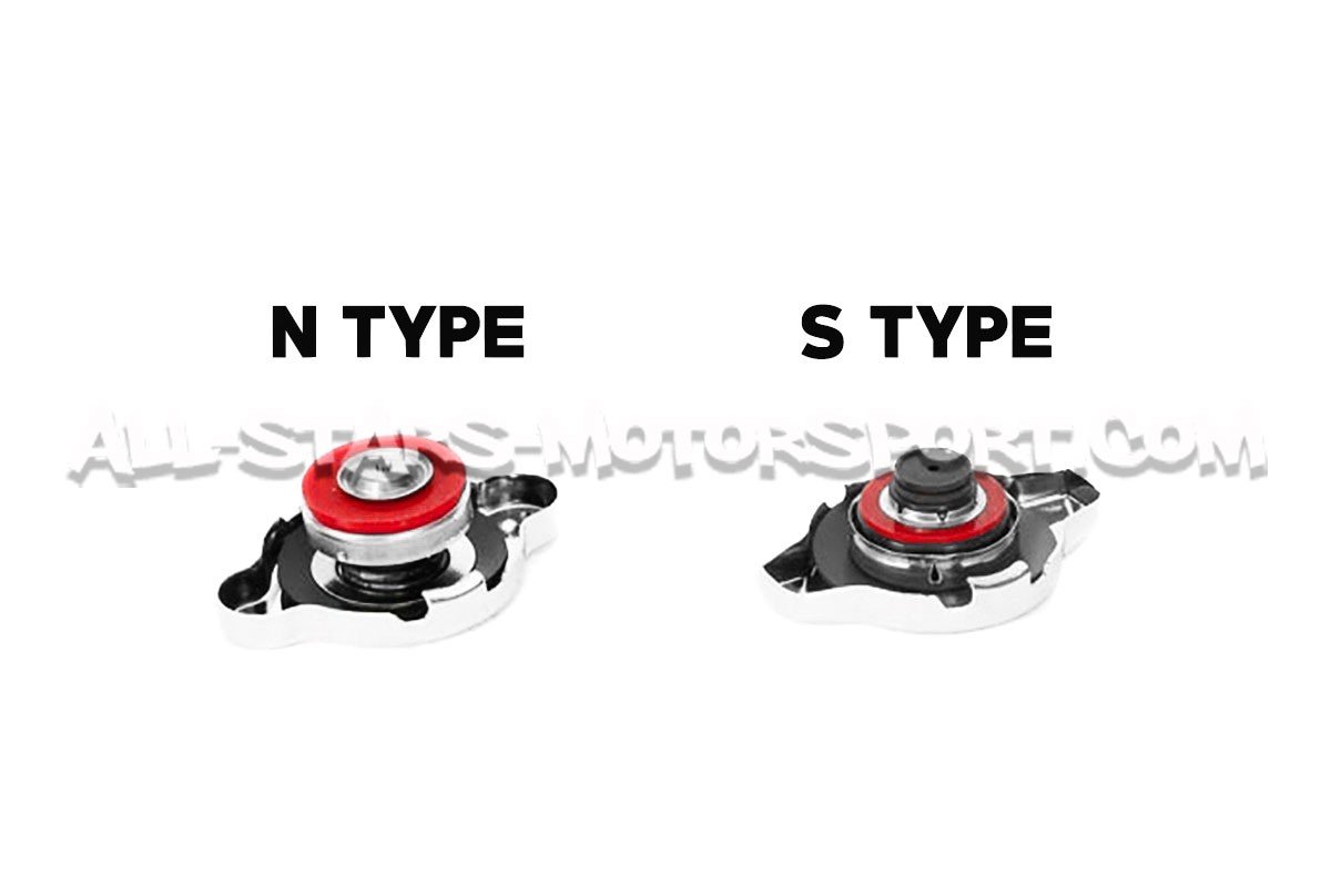 Allowing to increase the pressure inside the cooling circuit, this HKS radiator cap, rated at 1.1 bars, fits without modification to optimise the efficiency of the radiator. Available in two versions (flat or deep plunger - see pics) to fit all types of vehicles, this cap made of polished aluminium, will bring in addition to its technical properties an elegant touch to the engine bay.
