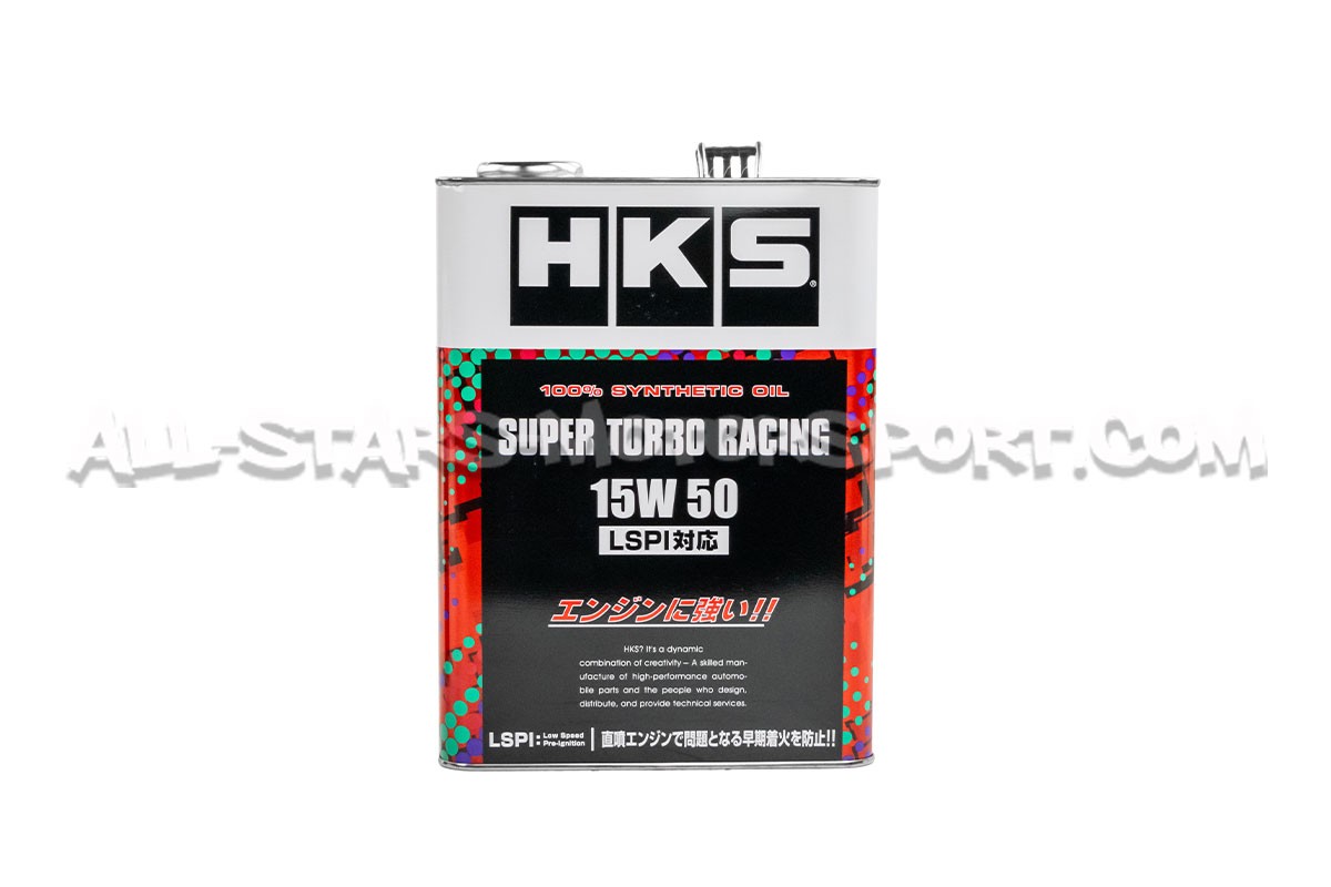 Designed for high performance turbo engines with a displacement range of 2.0L to 4.0L, this HKS Super Turbo Racing engine oil has a 15W50 grade and a 100% synthetic composition to allow optimal lubrication of direct injection engines.