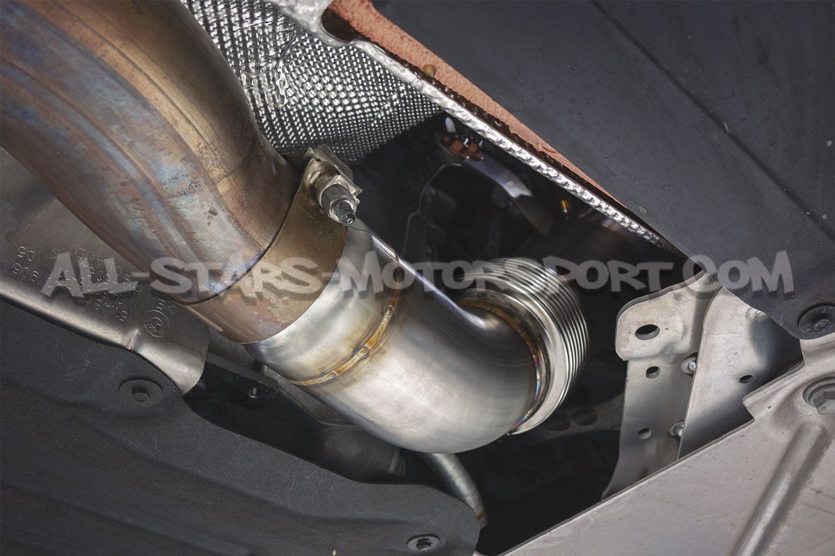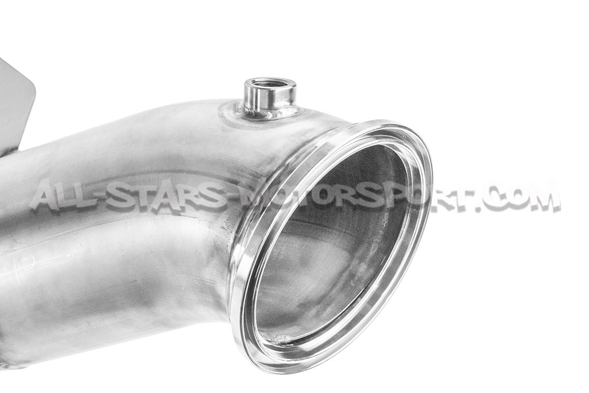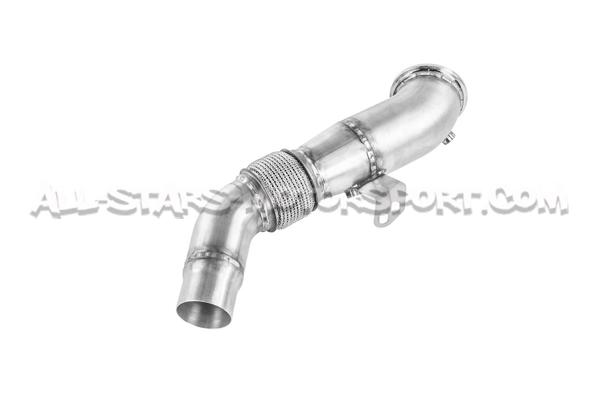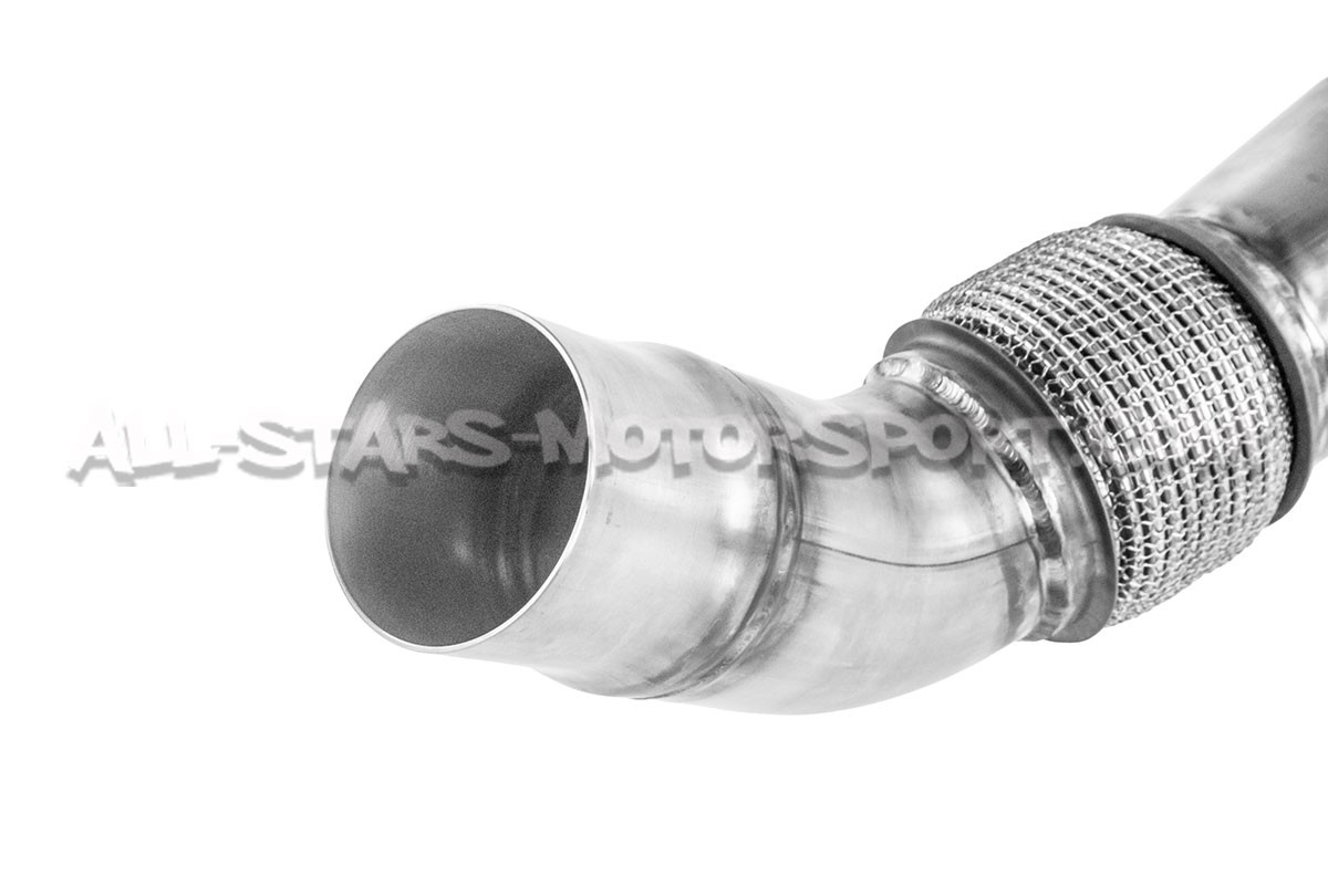 This AMS Performance decat downpipe, made in the USA from high quality stainless steel, fits without modification on the B58 engines of the Toyota Supra MK5 in order to remove the OEM catalyst. Featuring a primary diameter of 4.5" reduced on the flexible section to 3.5", this downpipe is ultimately reduced to 3.15" to connect to the original catback or any performance exhaust without adaptors or cutting.