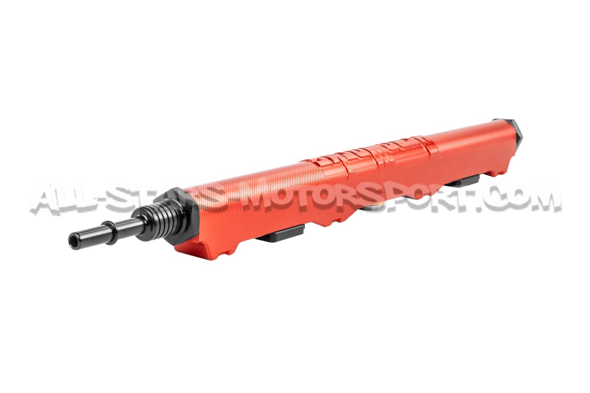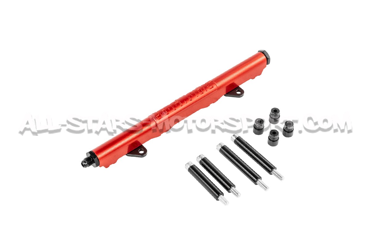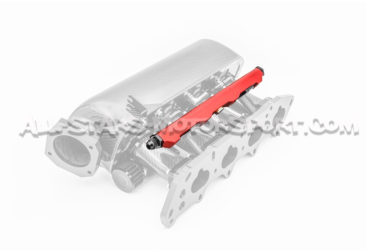 Intended to increase the fuel flow of the K20 / K24, F20 / F22 or B16 / B18 / B20 engines, the PracWorks port injector rails are specifically designed for direct mounting on the brand's manifolds. Made from aluminum with a sleek red anodized finish, PracWorks rails feature -8 ORB inlet and outlet ports and a central M14x1.5 port.