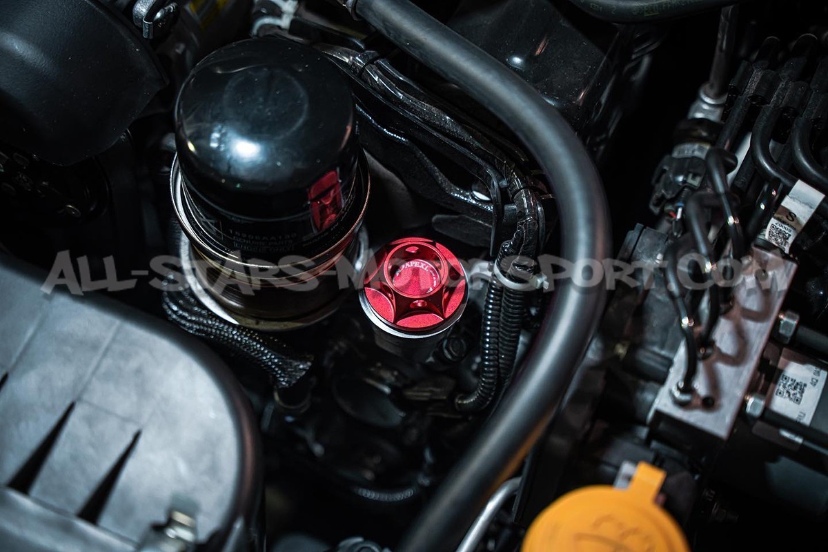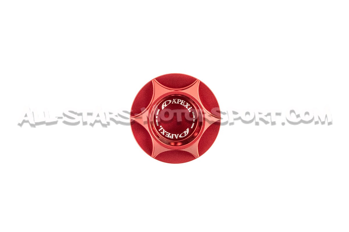 Made of high-quality aluminum with a trendy red anodized finish, this Apexi oil filler cap fits without modification on Subaru engines (and Toyota FA) using a screw-type OEM filler cap.