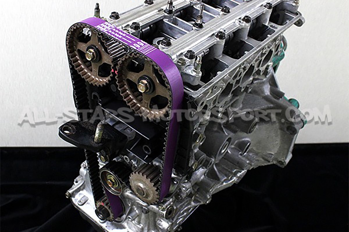 Intended for the B16 engines of the Honda Civic EG6 / EK4, this HKS Fine Tune reinforced timing belt fits without modification in order to optimise the reliability of the 1.6 VTEC engine. Made from Aramid and Nylon fiber, this reinforced belt has a specific structure that allows the teeth to rest evenly on the pulleys in order to reduce tensile stresses and ensure excellent reliability and durability.
