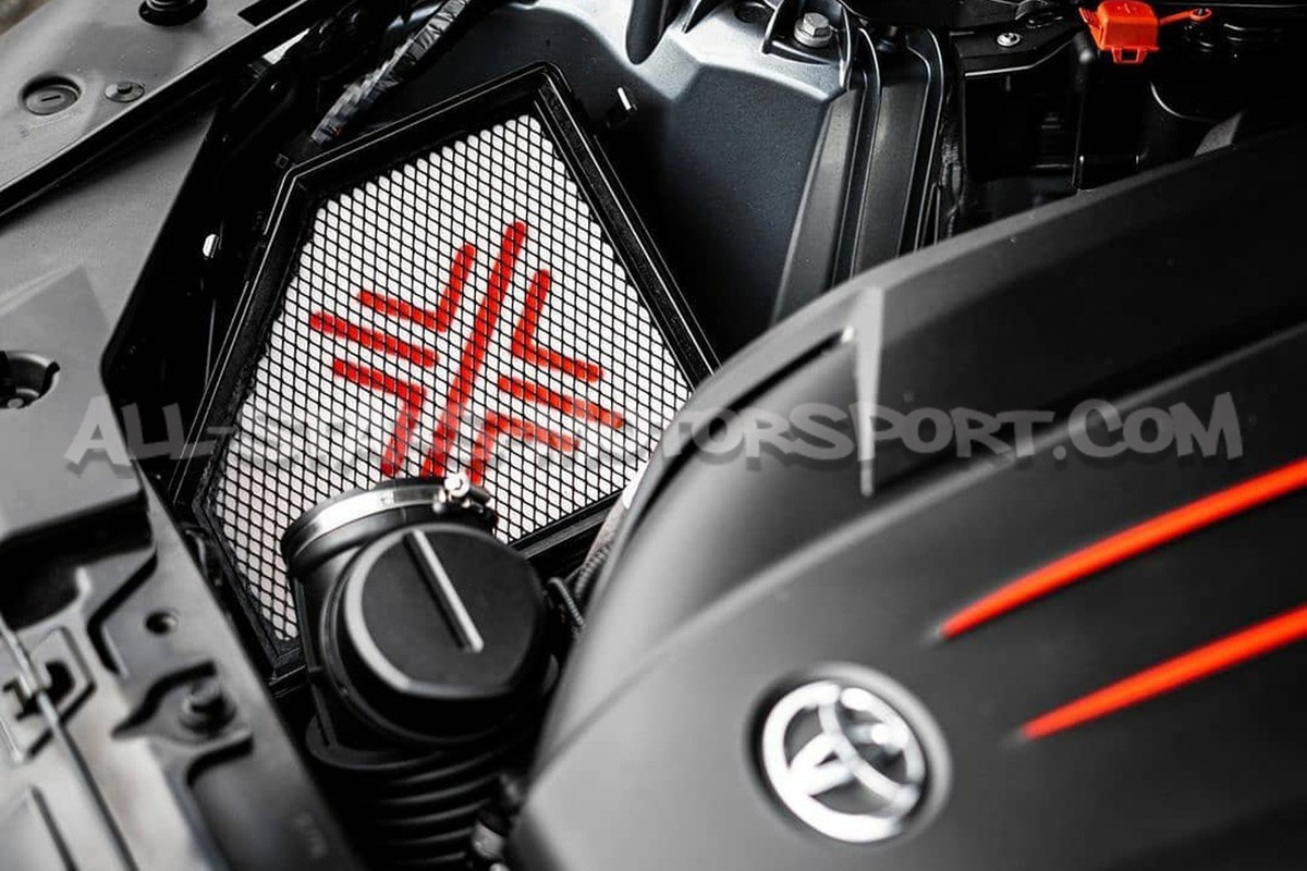 Made in the United Kingdom, Pipercross high performance panel air filters for the Toyota GR Supra 3.0 A90 MK5 are made from several layers of polycellular foam ensuring optimal filtration of dirt particles while optimizing air flow. Delivered ready to install without modifications, as a direct replacement for the OEM one, this washable and reusable Pipercross air filter provide a remarkable 35% increase in airflow and combine performance, reliability, and longevity.