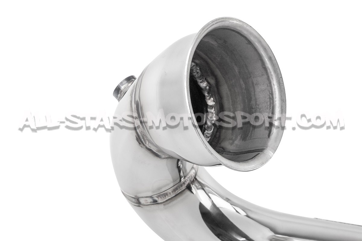 Made from high quality T304 stainless steel available without specific treatment or covered with a ceramic coating to limit thermal propagation, this Armytrix decat downpipe intended for the Mercedes A45 AMG W176 / CLA45 AMG C117 offers a particularly aggressive sound and a significant power gain. With a 3" / 76mm diameter, this downpipe coming with its reducer matching the OEM catback, is equipped with a cat simulator to prevent check engine light due to standard catalyst removal.