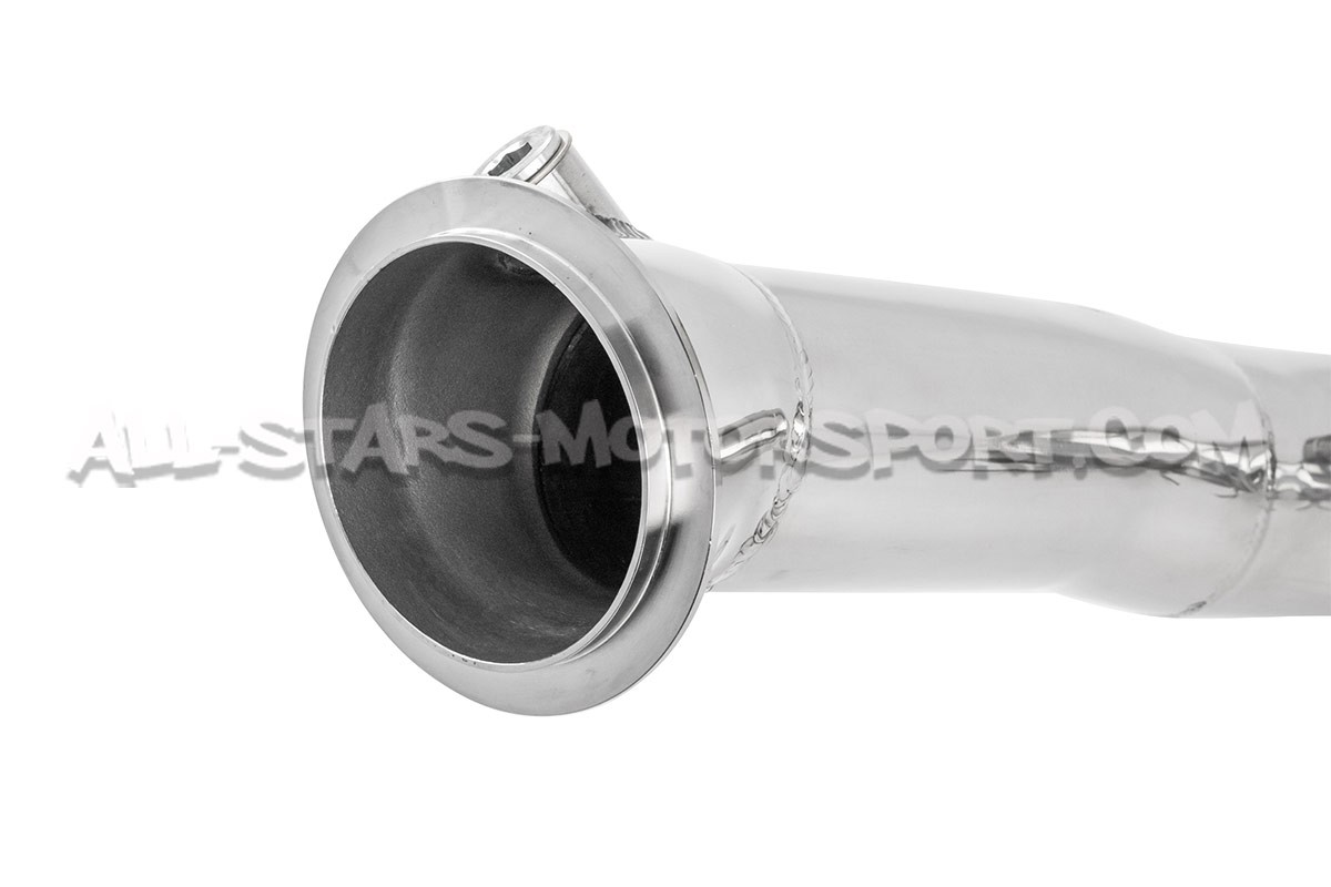 Made from high quality T304 stainless steel available without specific treatment or covered with a ceramic coating to limit thermal propagation, these Armytrix decat downpipes intended for the BMW M3 F80 / M4 F82 and M2 Competition F87 offer a particularly aggressive sound and a significant power gain. With a 2.5" / 63mm diameter, these downpipe are equipped with a cat simulator to prevent check engine light due to standard catalyst removal.