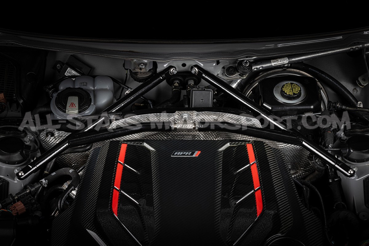 Designed to limit chassis torsion and optimize the rigidity of the front axle, this APR front strut tower brace fits without any modifications on the Audi S4 / RS4 B9 and S5 / RS5 8F. Made from high-strength Cr-Mo alloy, this tubular front brace features a discreet and elegant glossy black finish, adding an exclusive touch to the 2.9 TFSI and 3.0 TFSI engines.